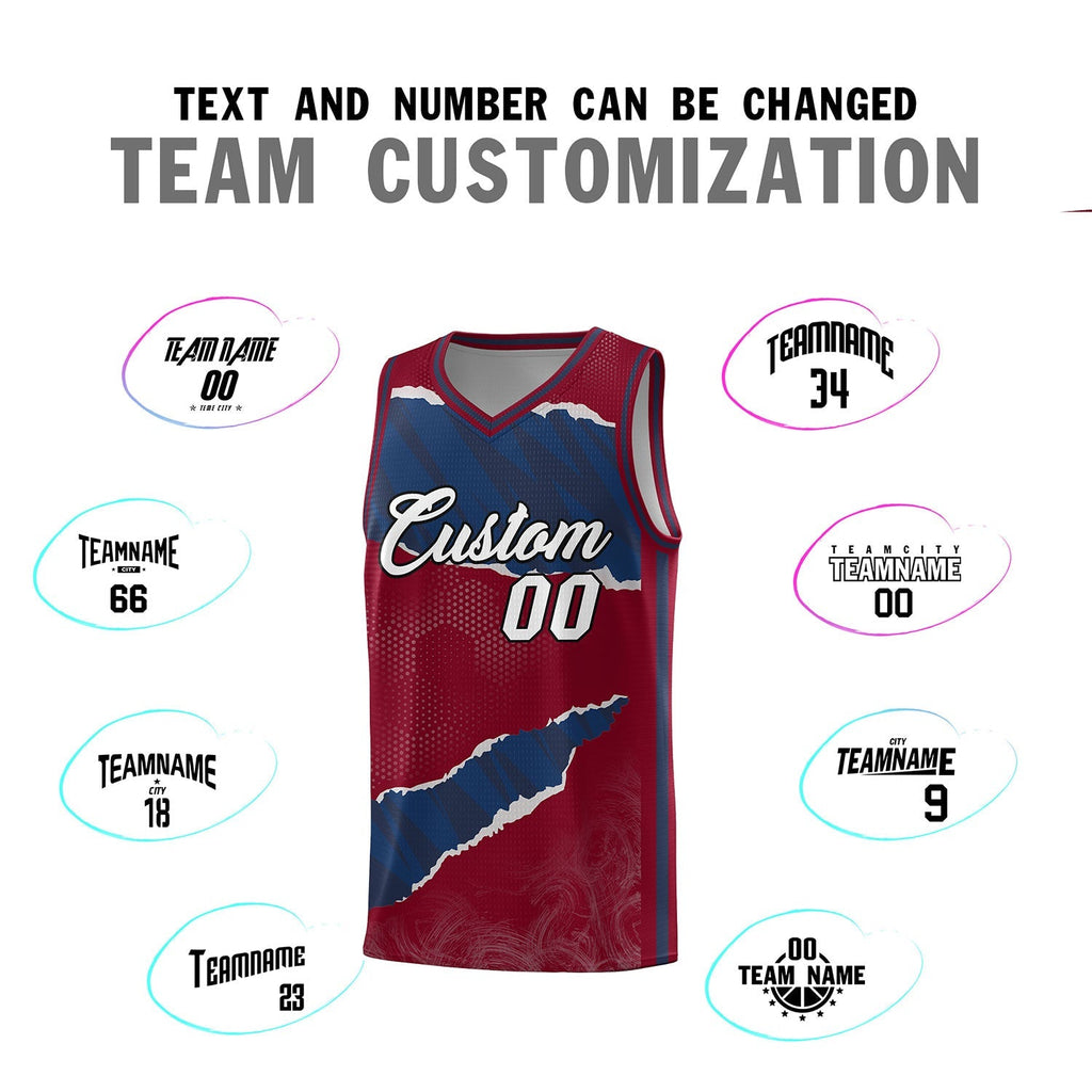 Custom Crimson Navy-Crimson Tear Graffiti Pattern Sports Uniform Basketball Jersey