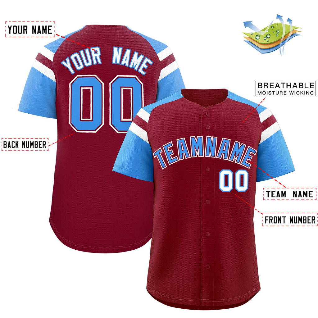 Custom Crimson Powder Blue Contrast Raglan Sleeves Authentic Baseball Jersey