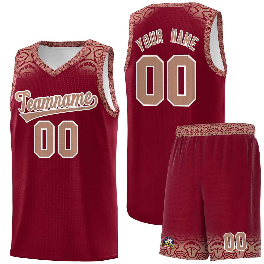 Custom Crimson Teabrown Personalized Indians Print Sets Sports Uniform Basketball Jersey