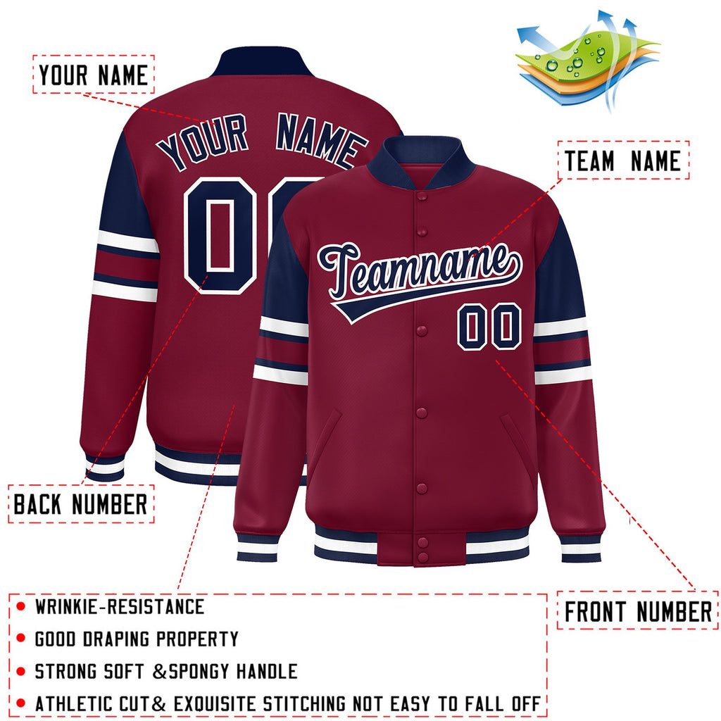 Custom Crimson Varsity Full-Snap Color Block Letterman Jacket