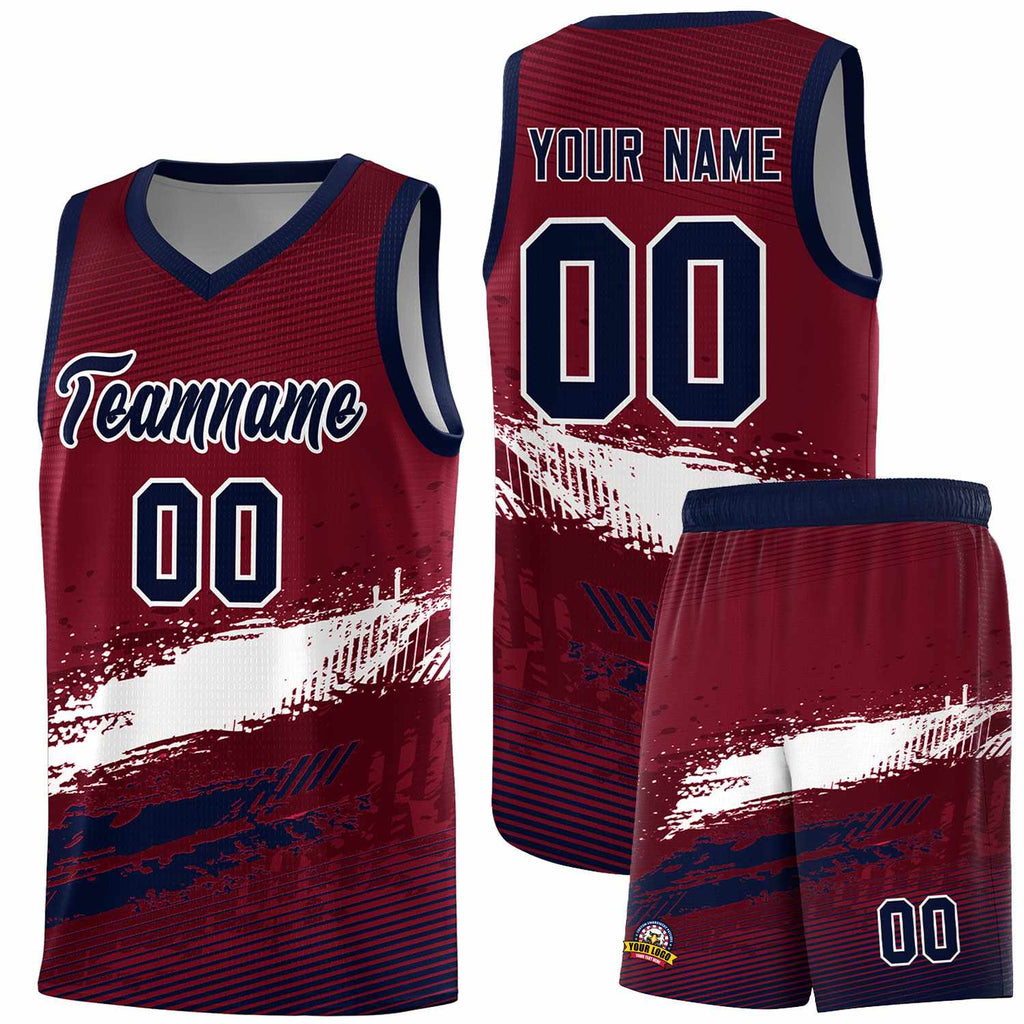 Custom Crimson White and Navy Graffiti Pattern Sports Uniform Basketball Jersey