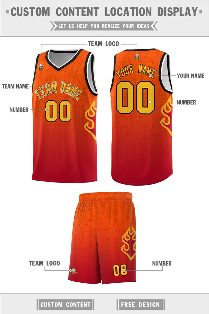 Custom Flame Gradient Fashion Sports Uniform Basketball Jersey Text Your Team Logo And Number For Adult