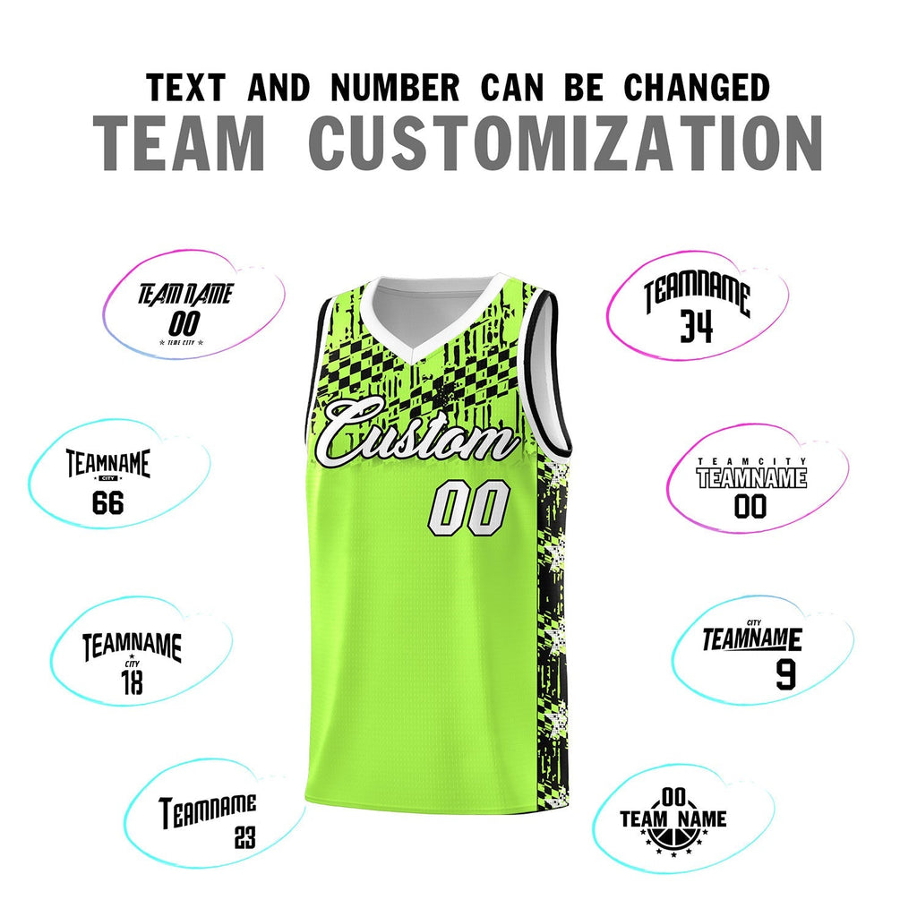 Custom Fluorescent Green Mosaic Stars Pattern Sports Uniform Basketball Jersey