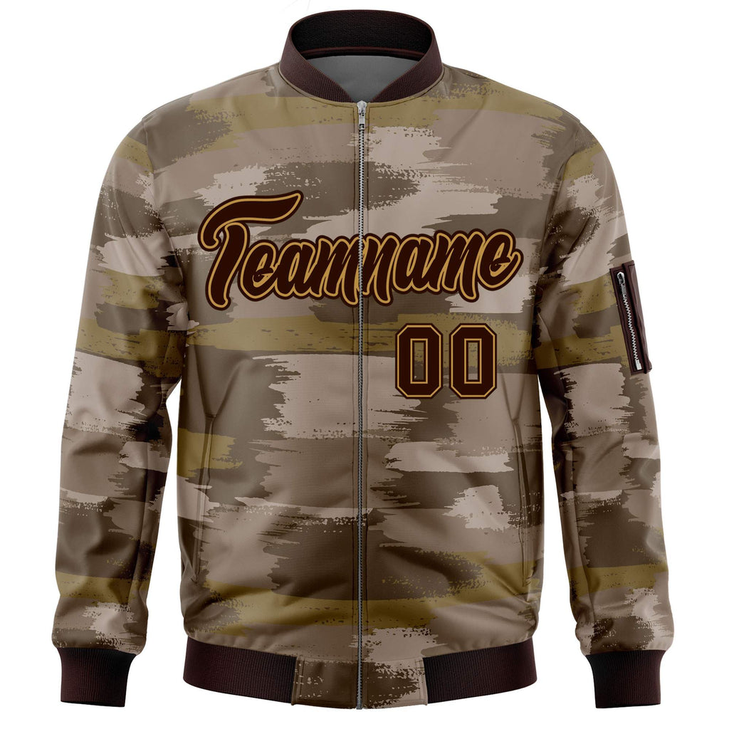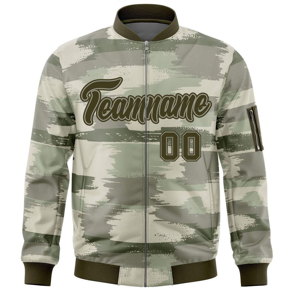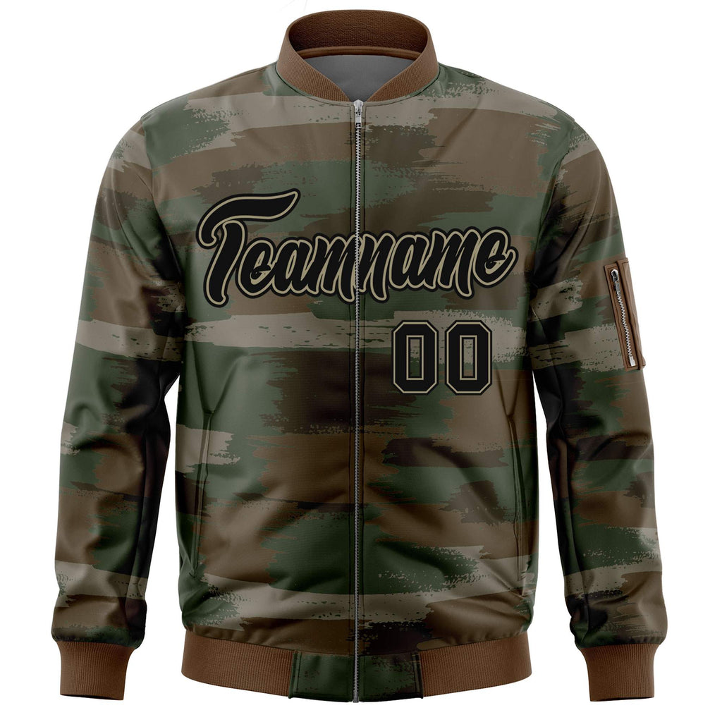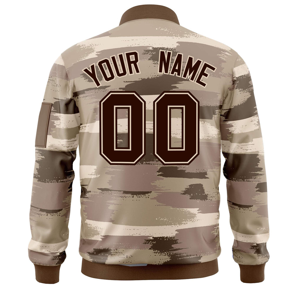 Custom Full-Zip Camo College Jacket Personalized Stitched Letters Logo Sweatshirt Letterman Bomber Coats for Adult/Youth