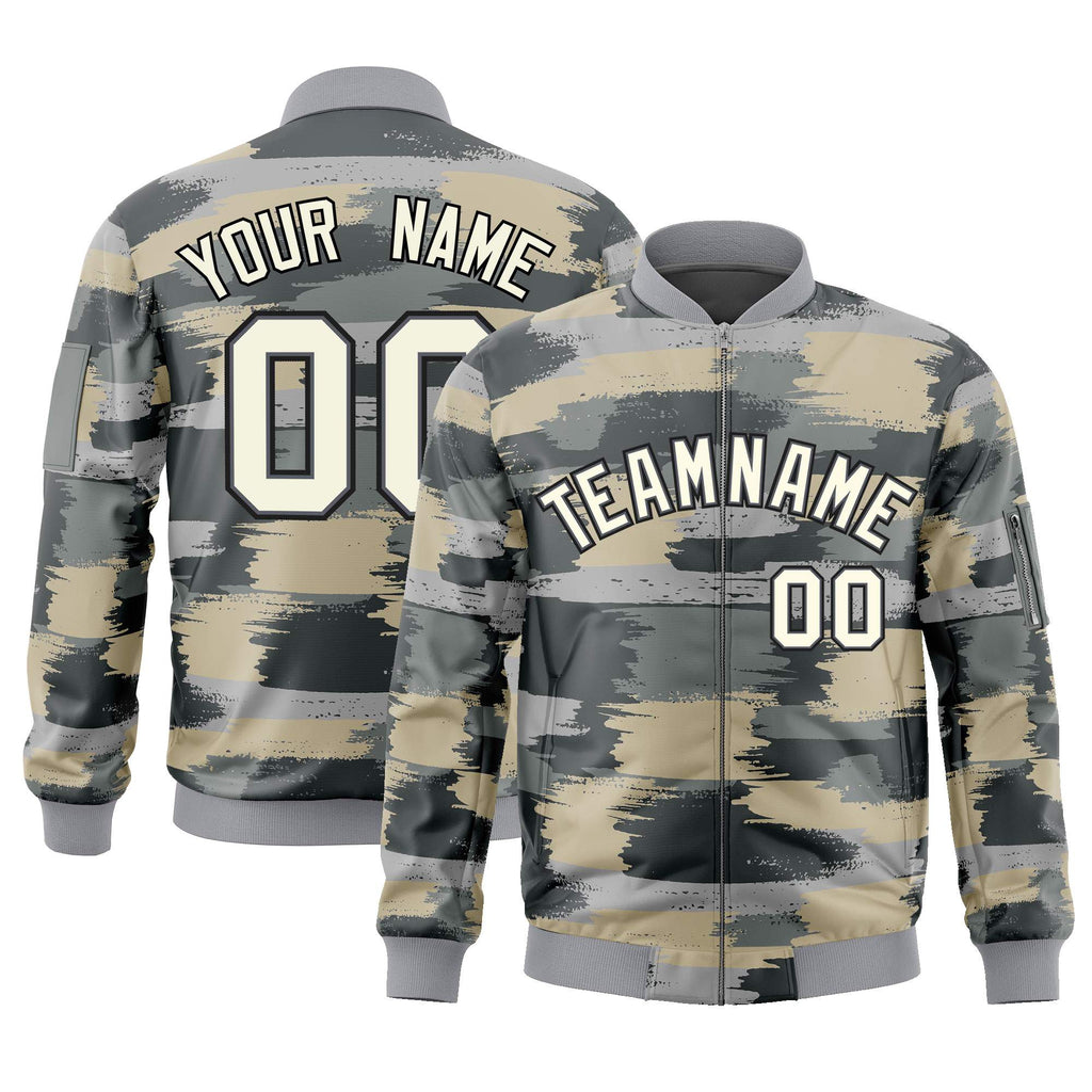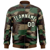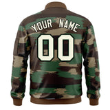 Custom Full-Zip Camo Fashion Lightweight College Jacket Stitched Text Logo Letterman Bomber for Adult/Youth Big Size
