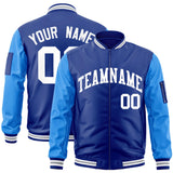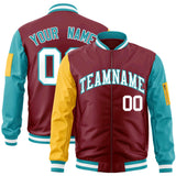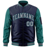 Custom Full-Zip Raglan Sleeves Varsity Baseball Jacket Stitched Text Logo for Adult/Youth