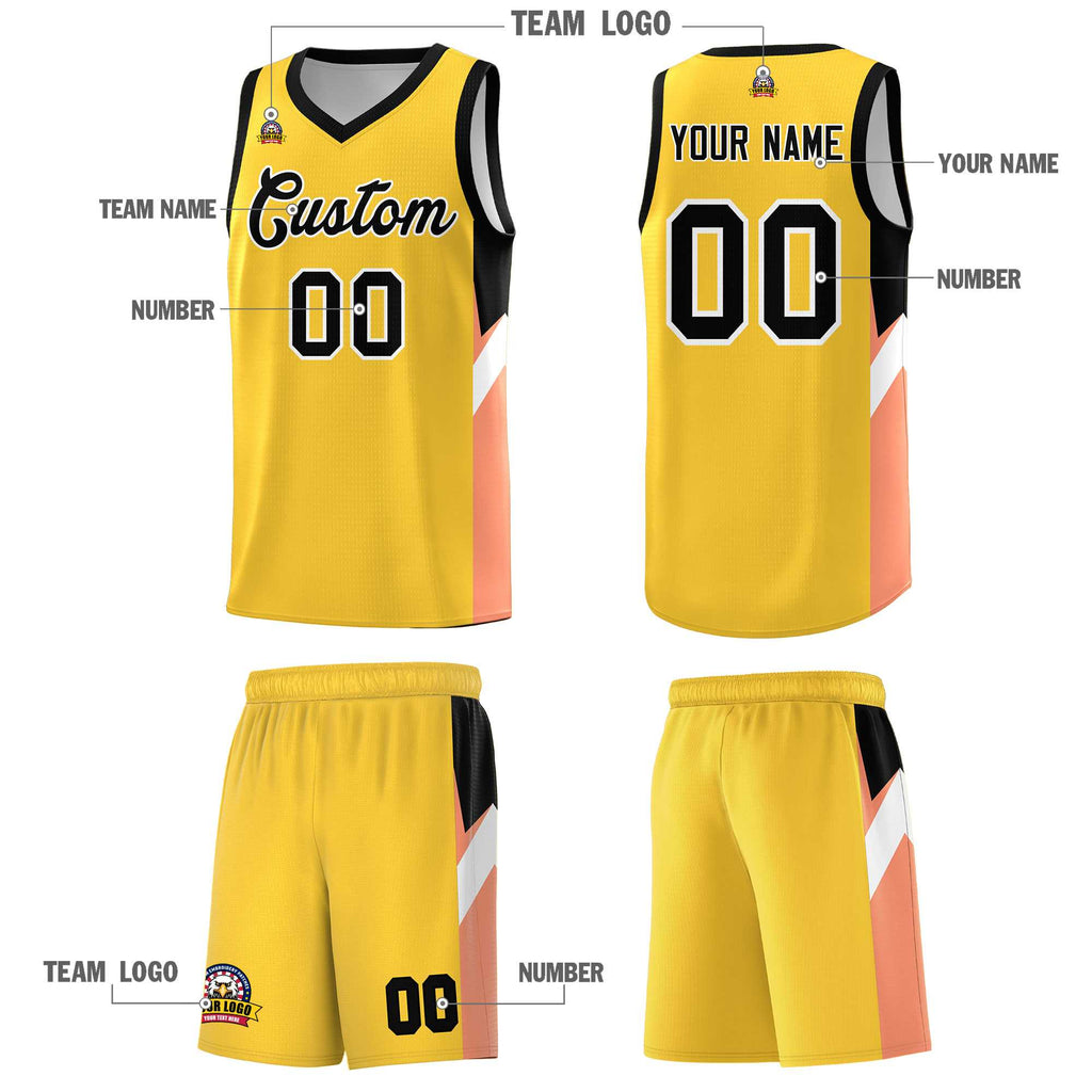 Custom Gold Black Side Design Sets Sports Uniform Basketball Jersey