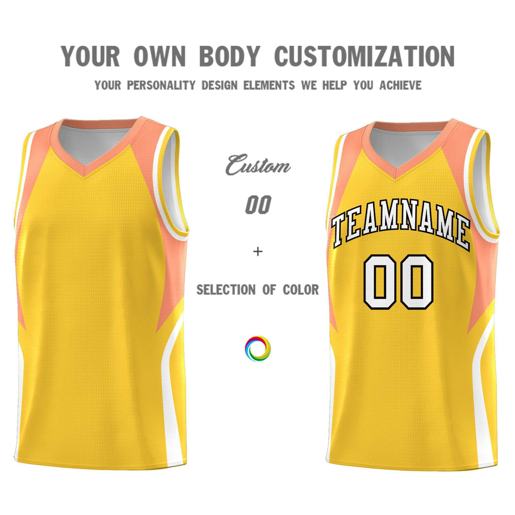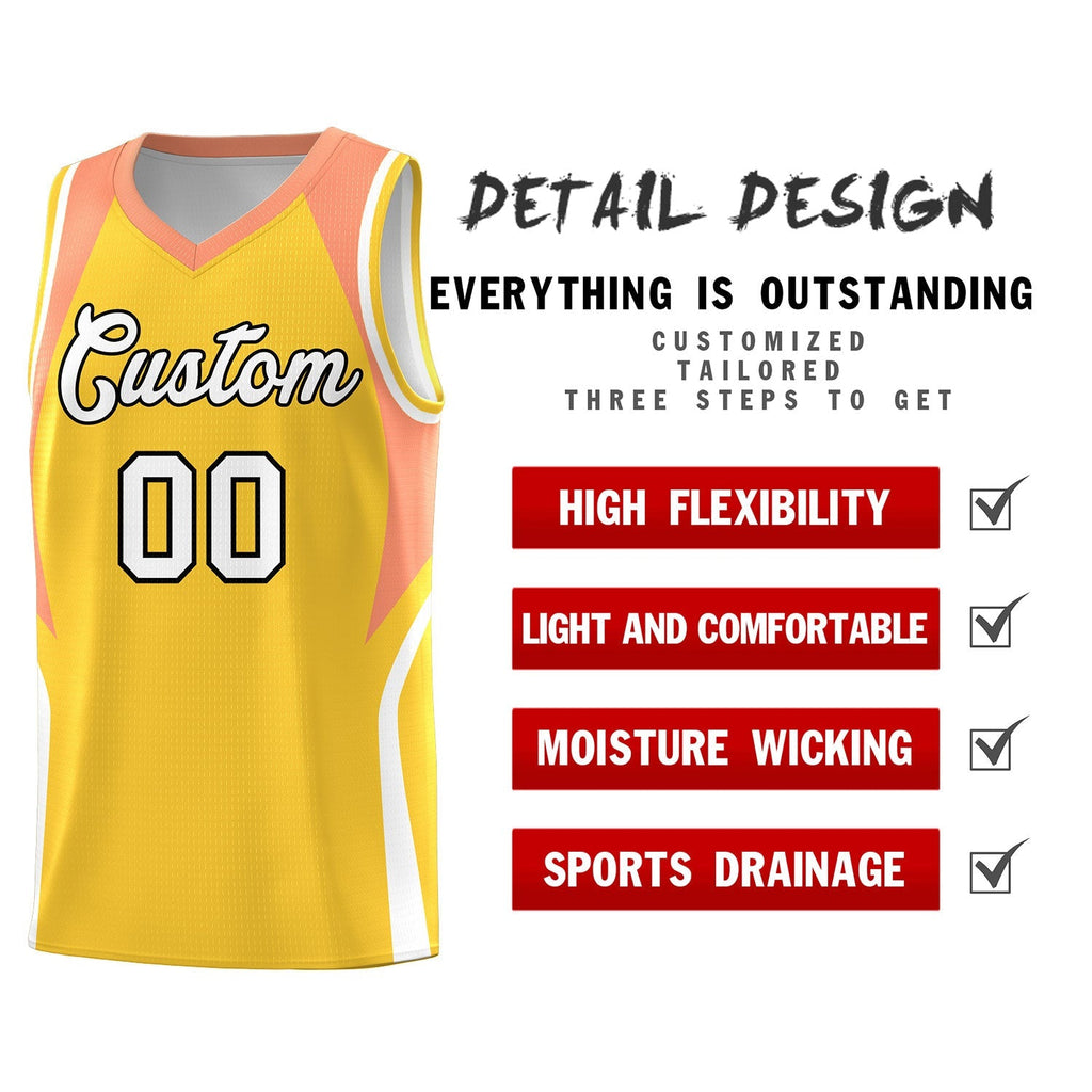 Custom Gold Orange and White Color Block Sports Uniform Basketball Jersey