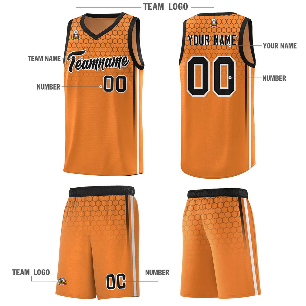 Custom Gold Orange Personalized Honeycomb Pattern Sports Uniform Basketball Jersey