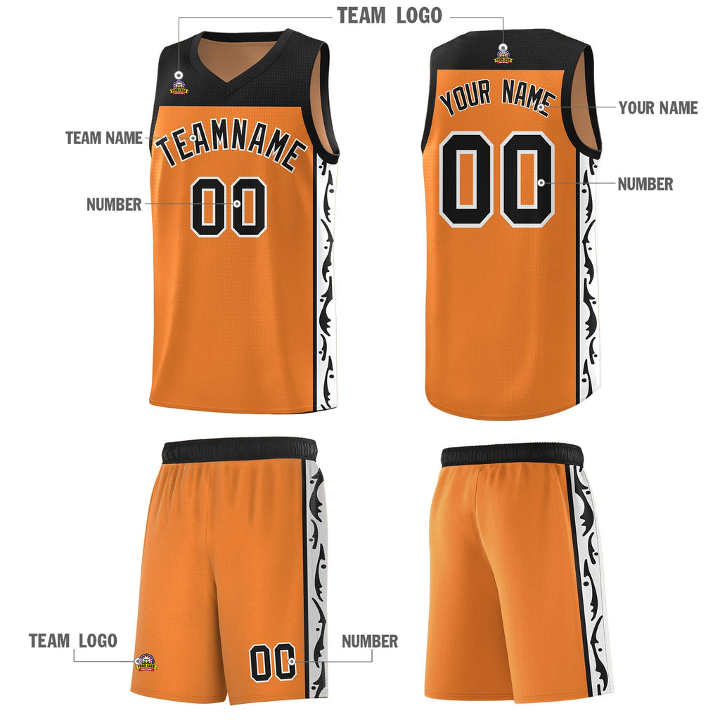Custom Gold Orange Side Pattern Sports Uniform Basketball Jersey