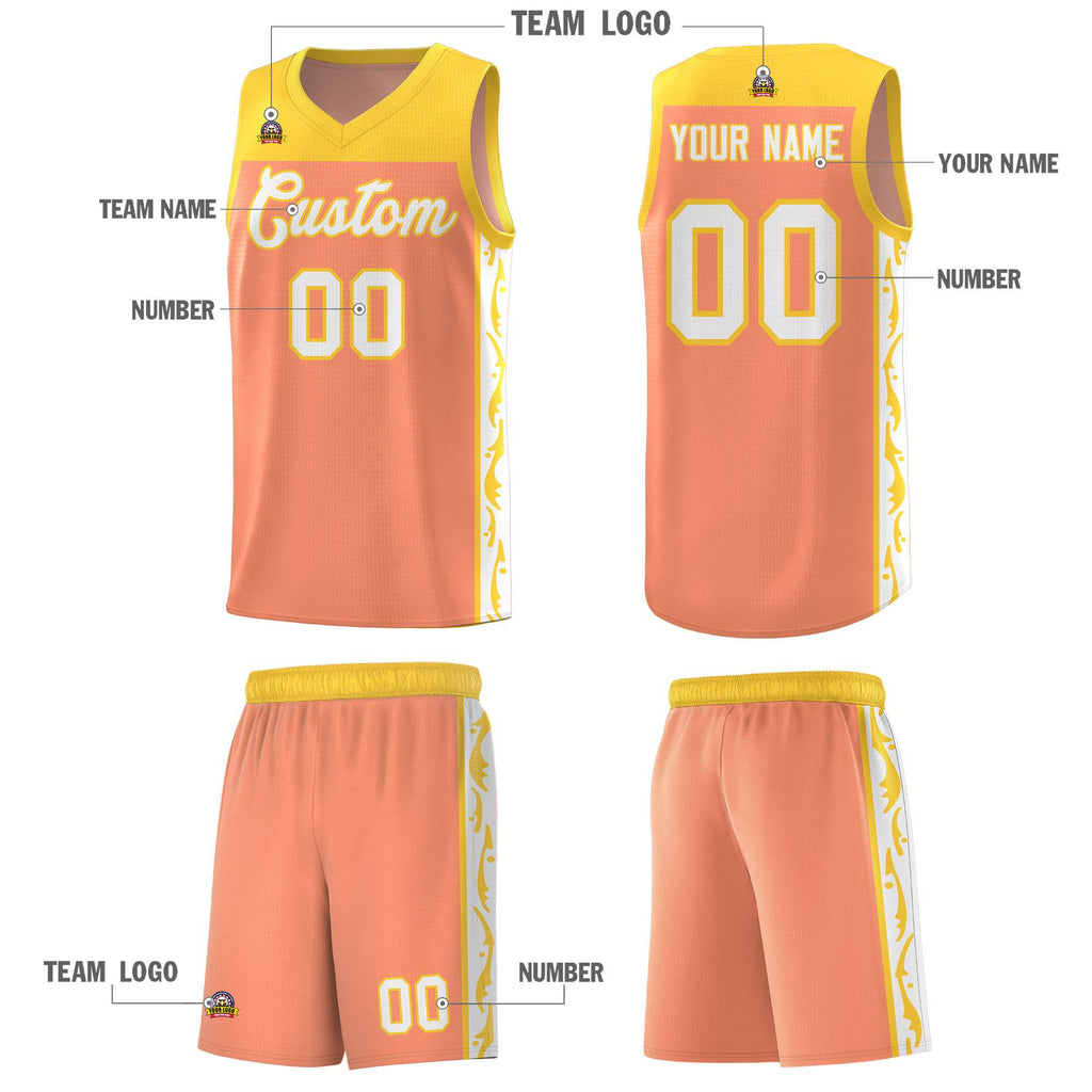 Custom Gold Orange Side Pattern Sports Uniform Basketball Jersey