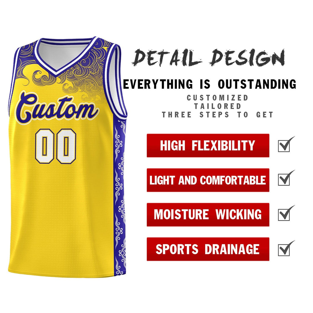 Custom Gold Personalized Cloud Pattern Sports Sets Uniform Basketball Jersey