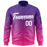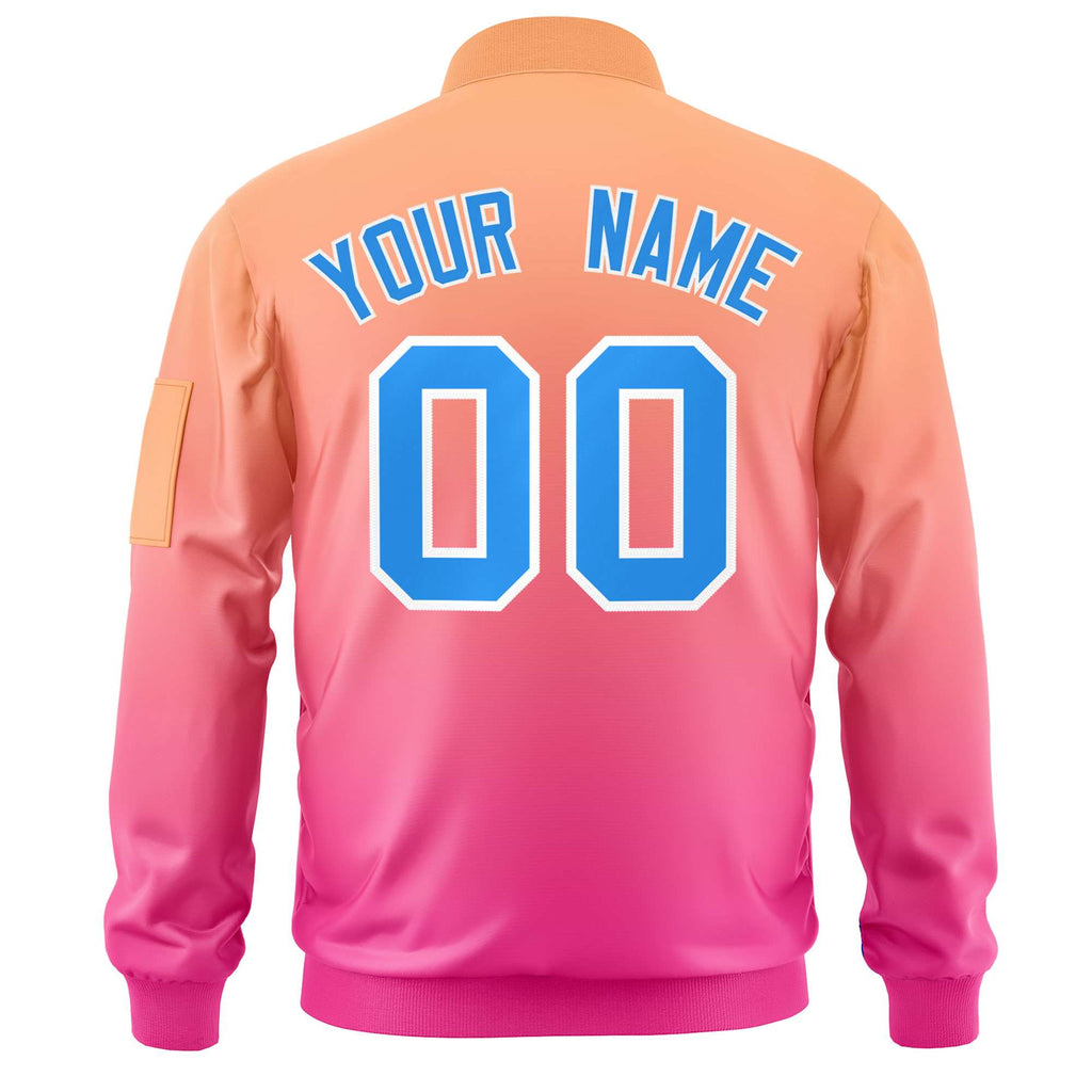 Custom Gradient Full-Zip Personalized Letterman Bomber Jacket Stitched Text Logo Winter Baseball Coat for Adult/Youth S-6XL