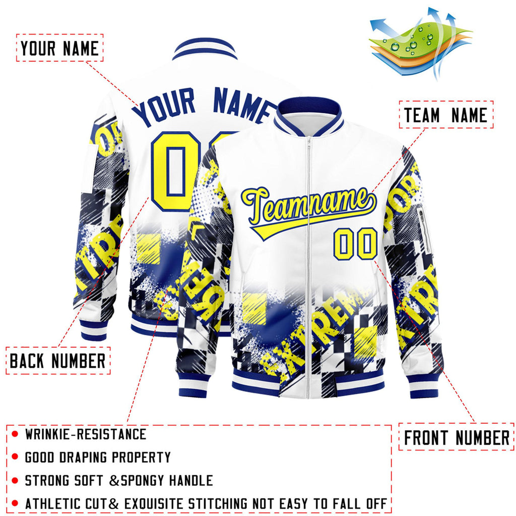 Custom Graffiti Pattern Fashion Letterman Bomber Jackets Personalized Outfit Full-Zip Baseball Coat