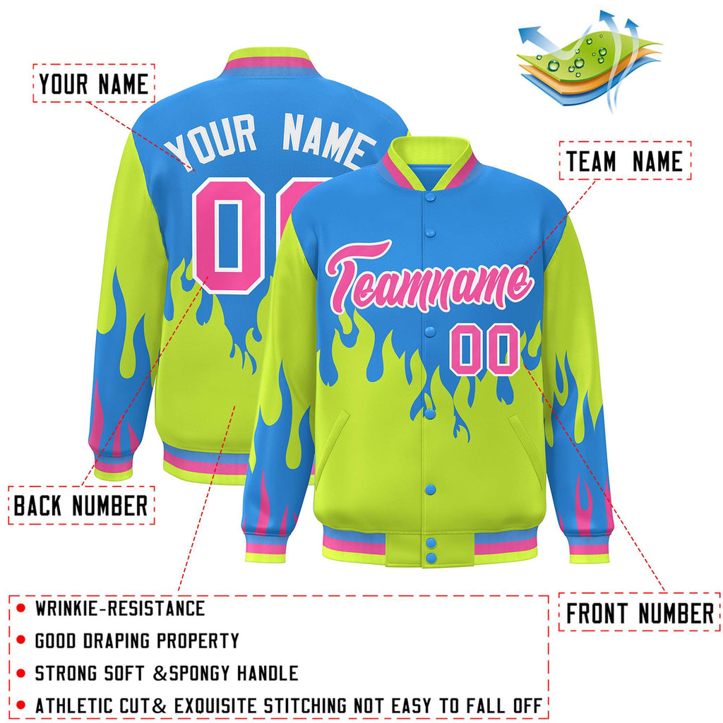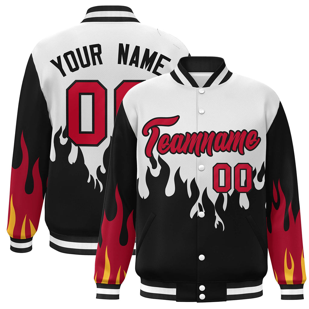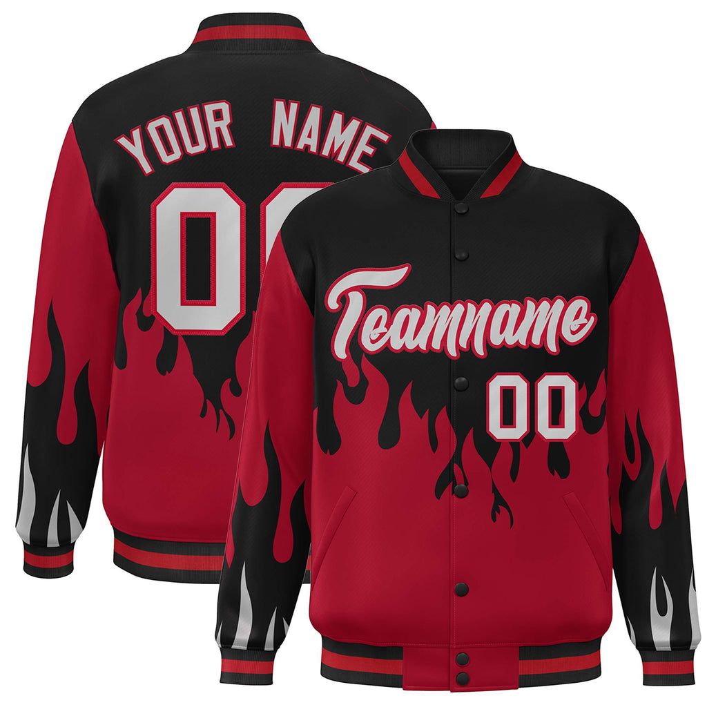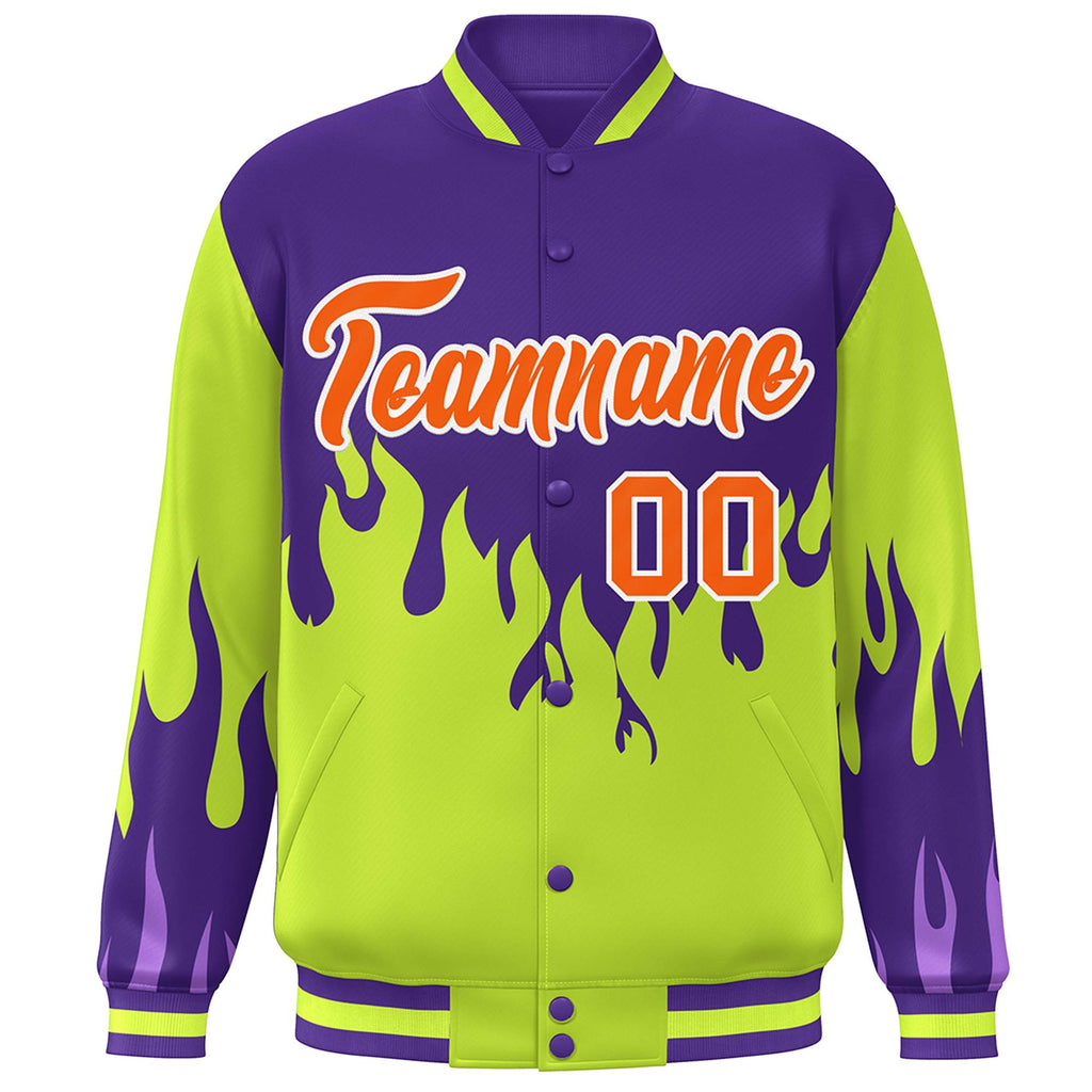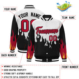 Custom Graffiti Pattern Flame Personalized Stitched Name Number Bomber Jackets Varsity Full-Snap Jacket For Men