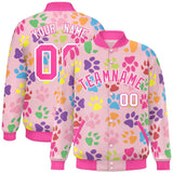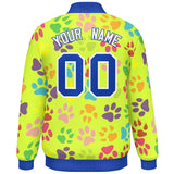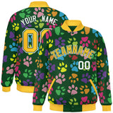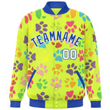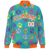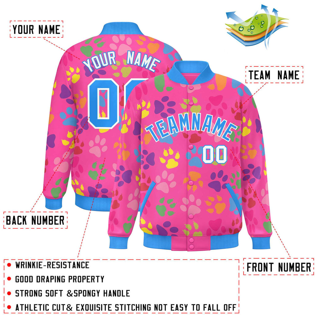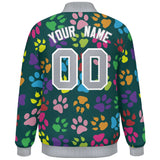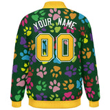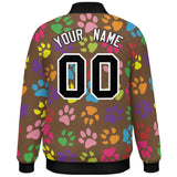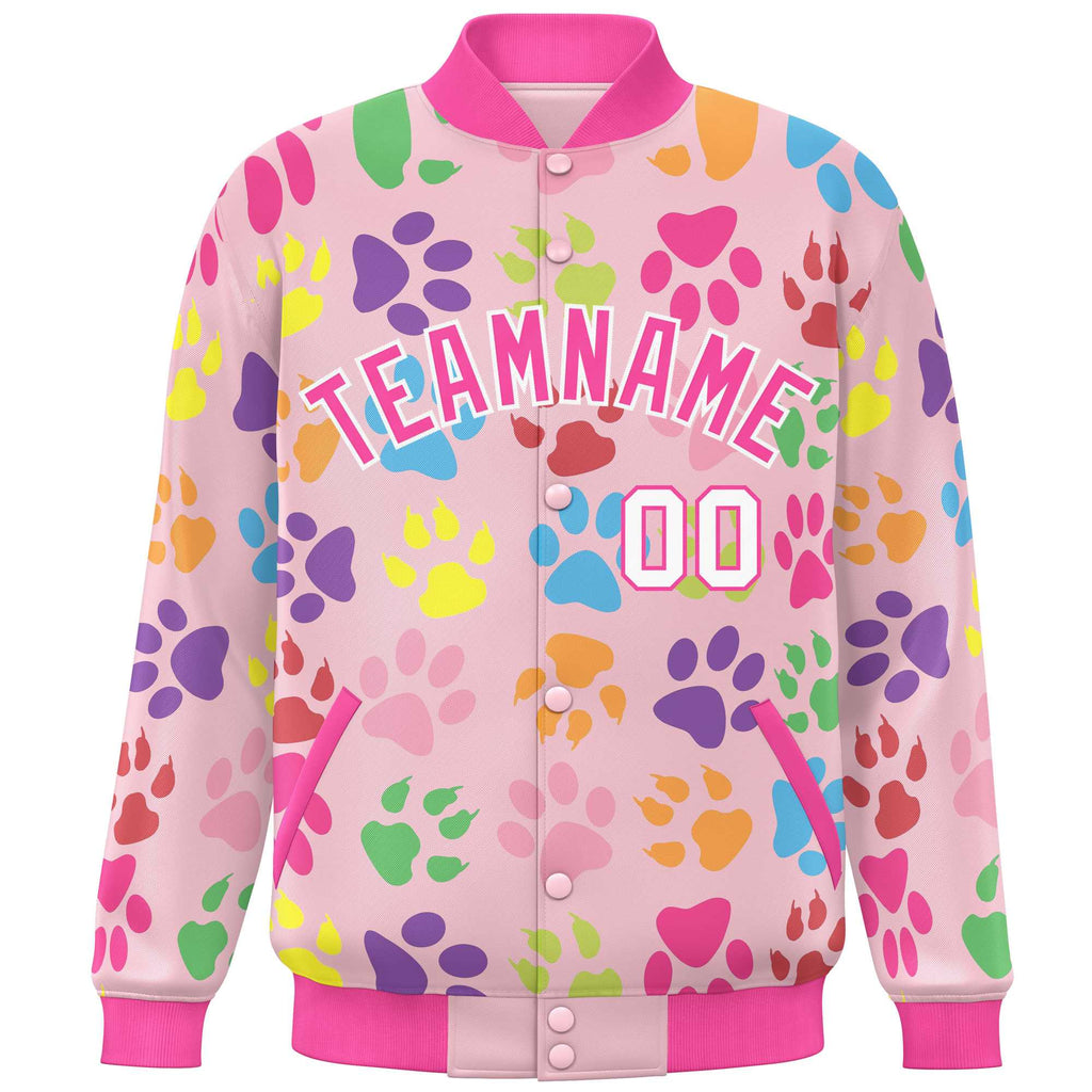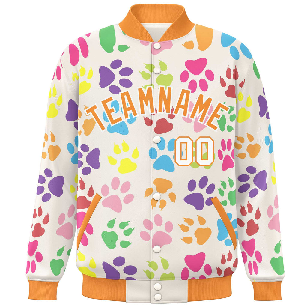 Custom Graffiti Pattern Pets Paw Prints Varsity Baseball Jacket for Men Women Personalized Letterman Jackets