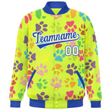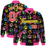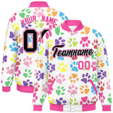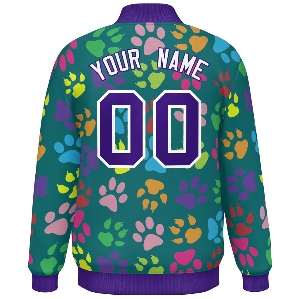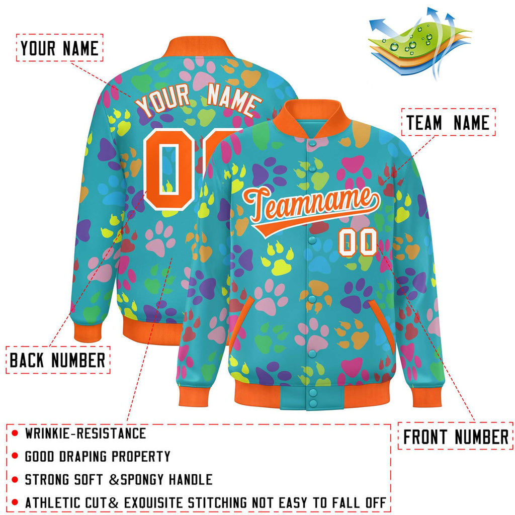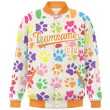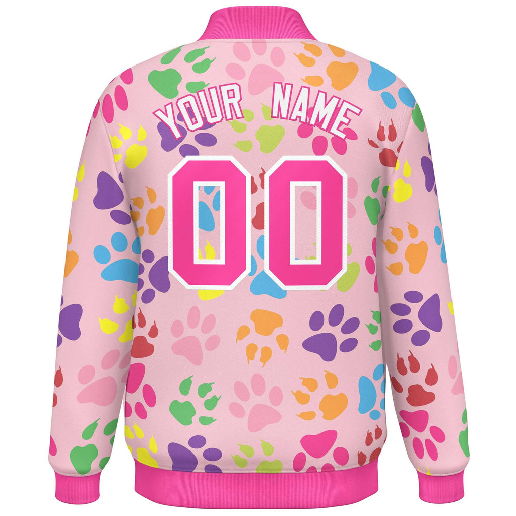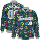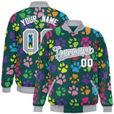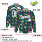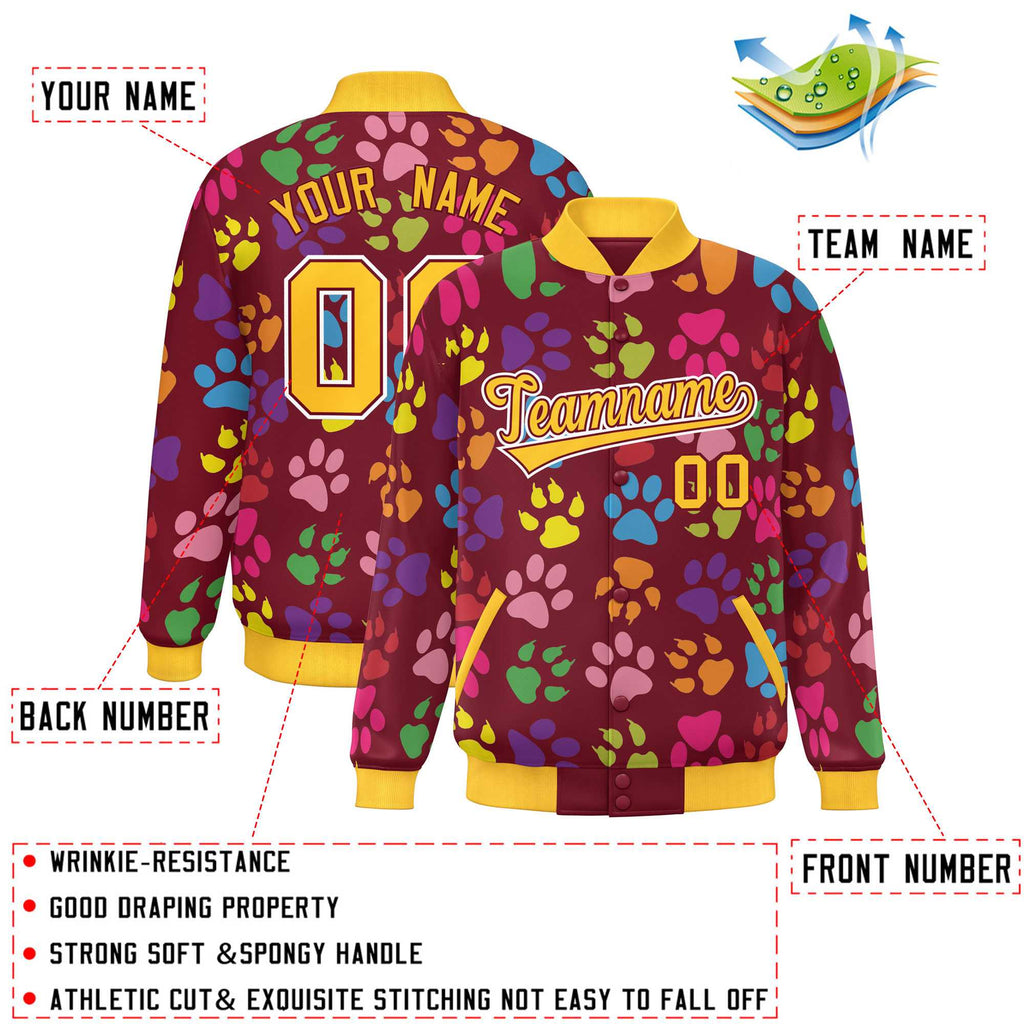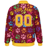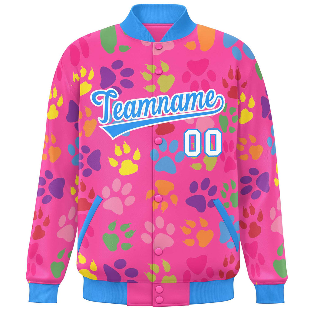 Custom Graffiti Pattern Pets Paw Prints Varsity Baseball Jacket Men Women Youth Letterman Jacket
