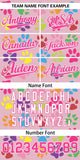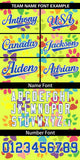 Customized information: Team Name:,Front Number,Your Name:,Back Number:.