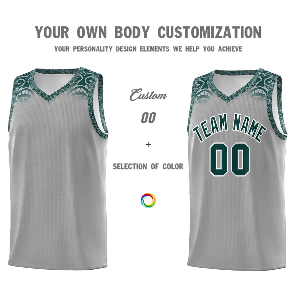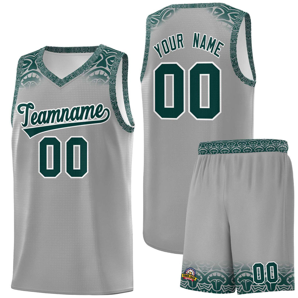 Custom Gray Midnight Green Personalized Indians Print Sets Sports Uniform Basketball Jersey
