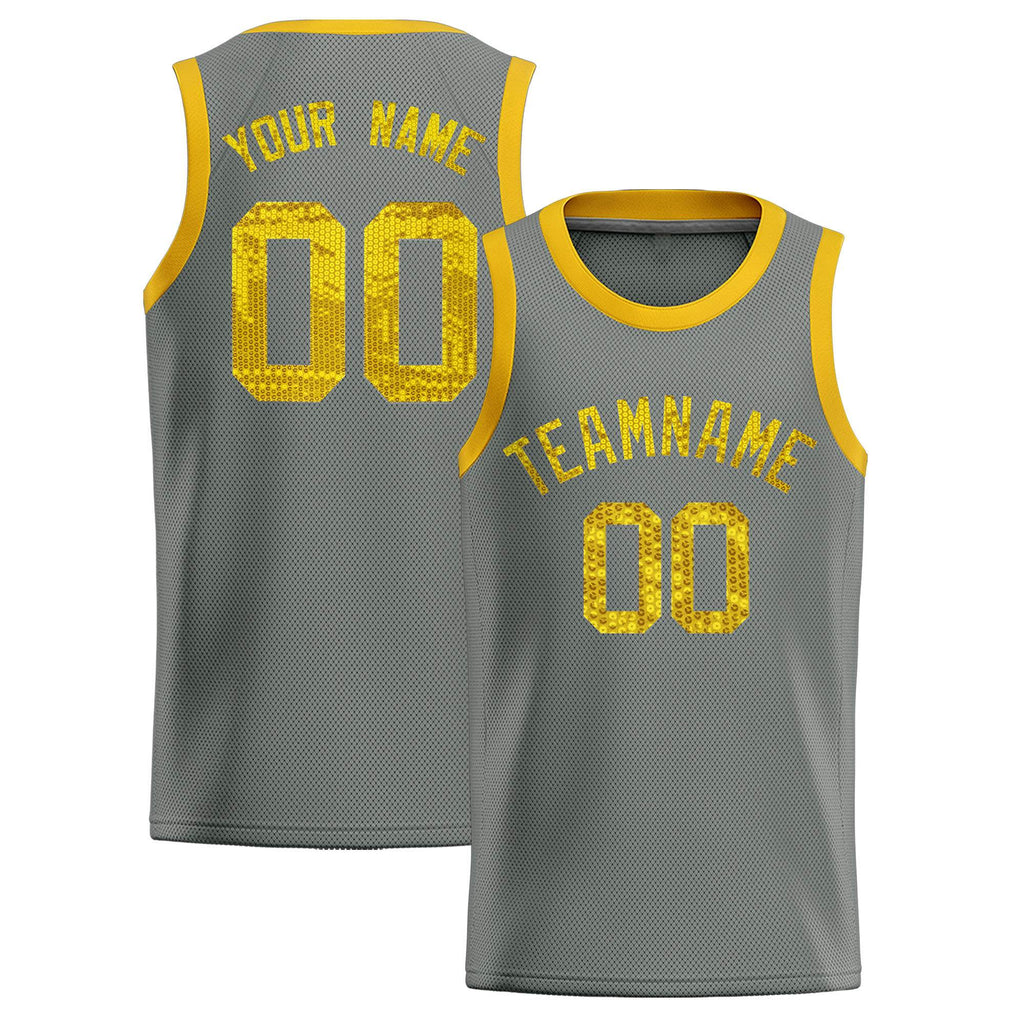 Custom Gray Sequined Tops Athletic Basketball Jersey