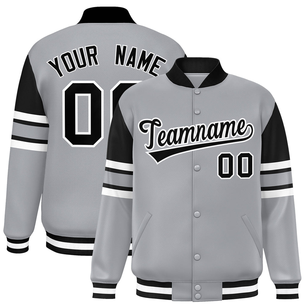 Custom Gray Varsity Full-Snap Color Block Letterman Jacket