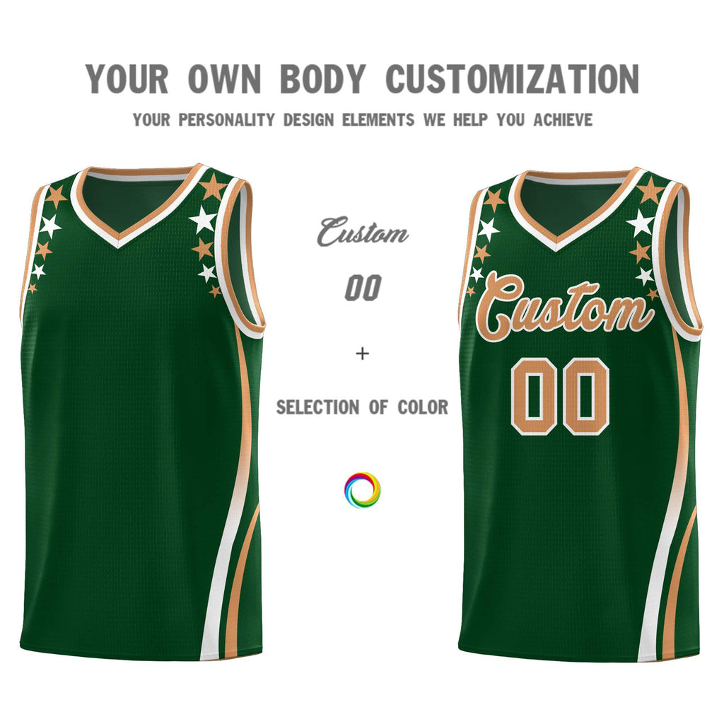 Custom Green Shoulders Star Pattern Side Color Block Sports Uniform Basketball Jersey