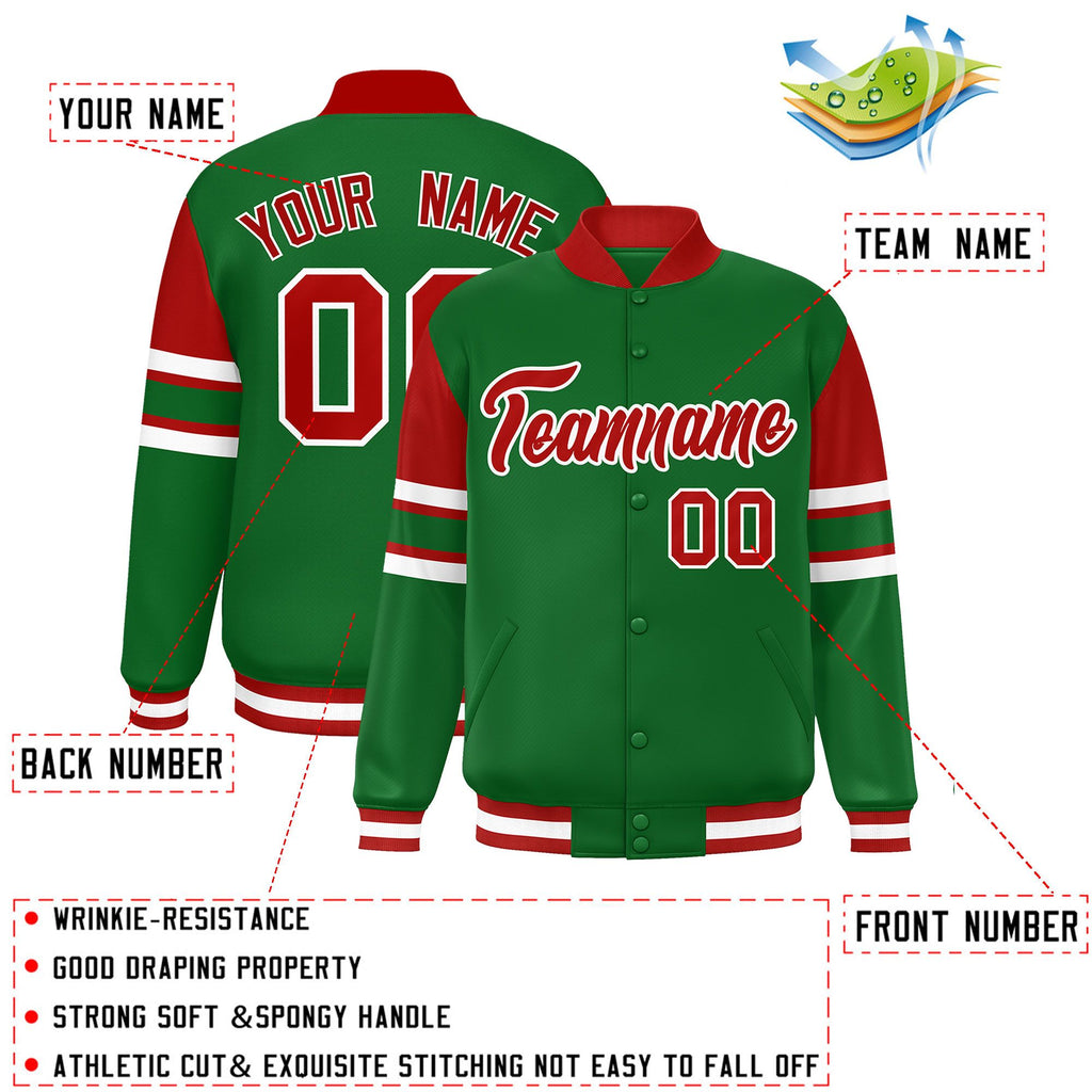 Custom Green Varsity Full-Snap Color Block Letterman Jacket