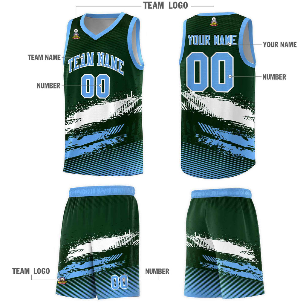 Custom Green White and Powder Blue Graffiti Pattern Sports Uniform Basketball Jersey