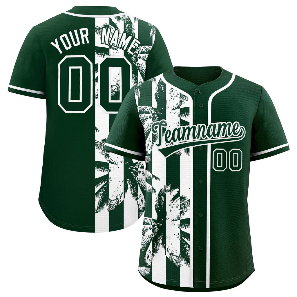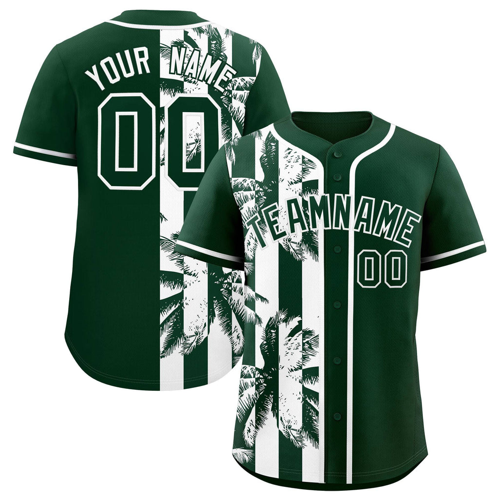 Custom Green White Split Fashion Coconut Tree Design Authentic Baseball Jersey