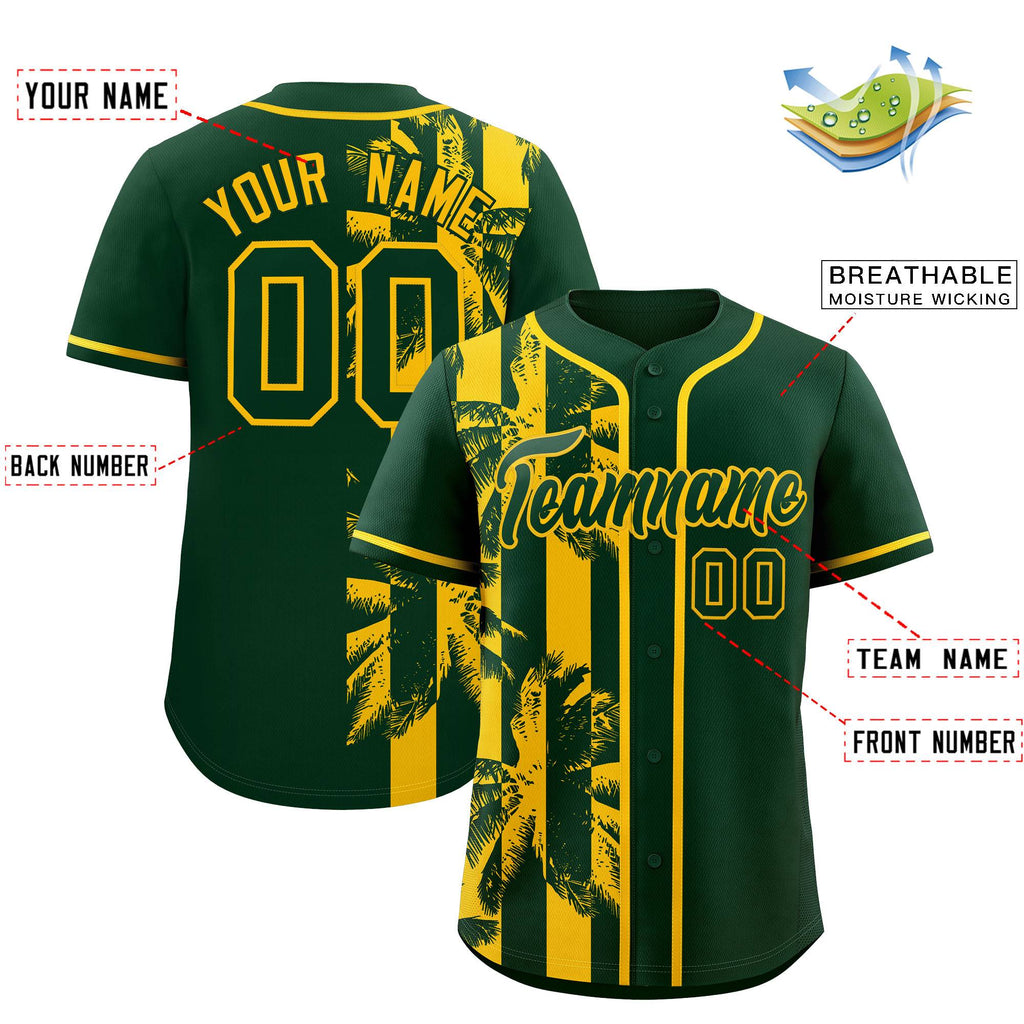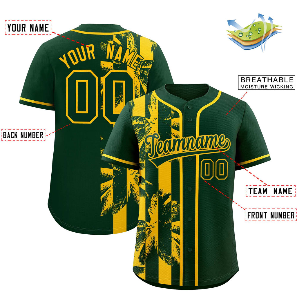 Custom Green Yellow Split Fashion Coconut Tree Design Authentic Baseball Jersey