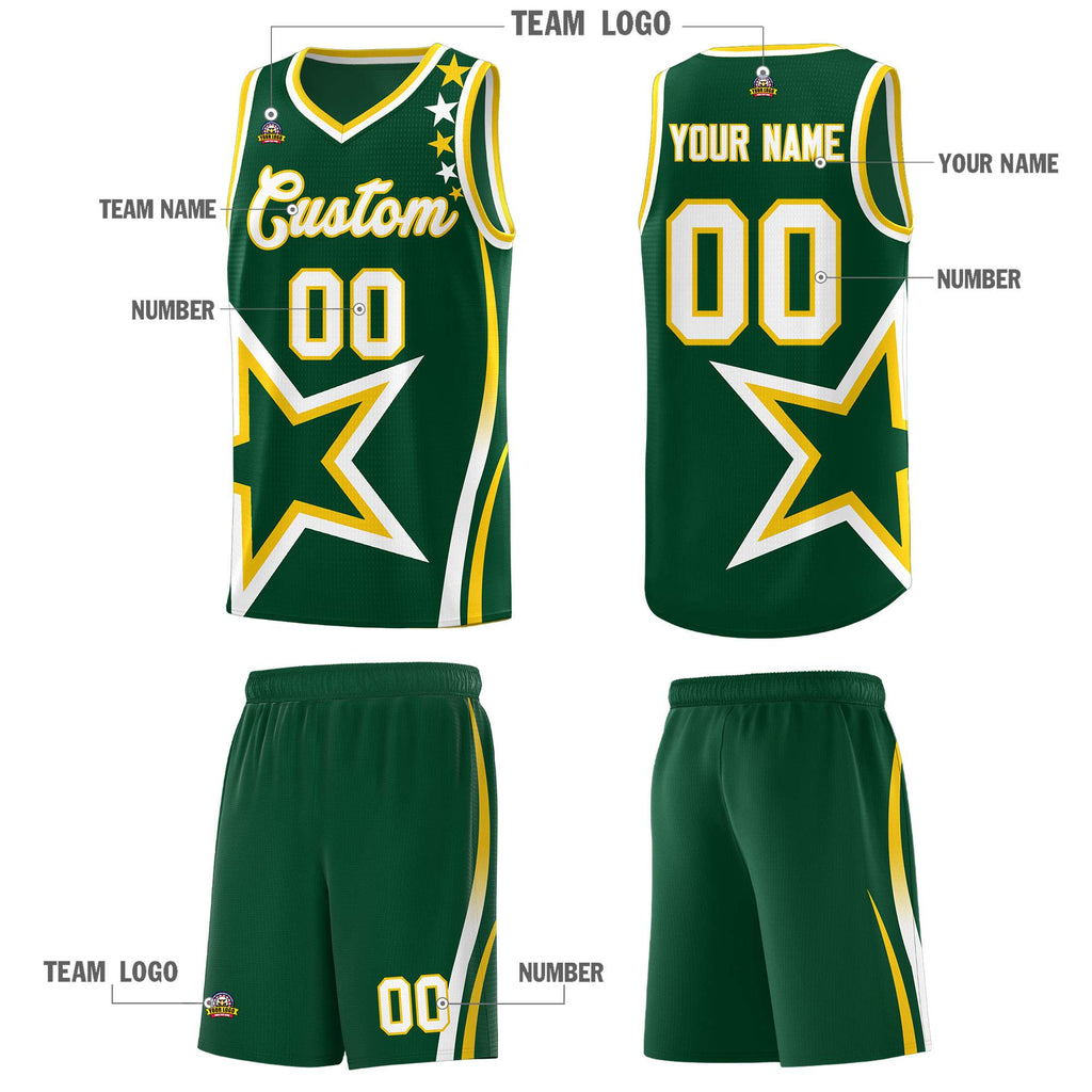 Custom Hunter Green Shoulder Stars Graffiti Pattern Sets Basketball Jersey