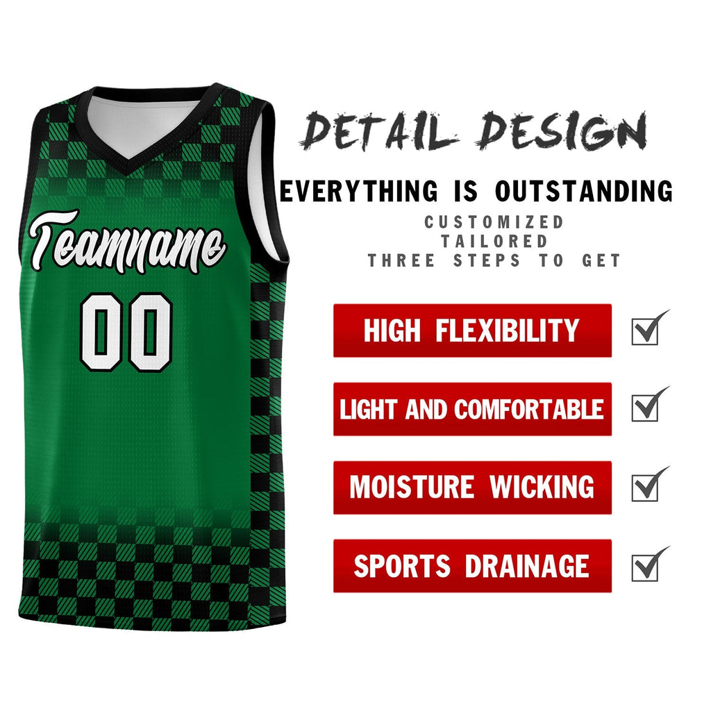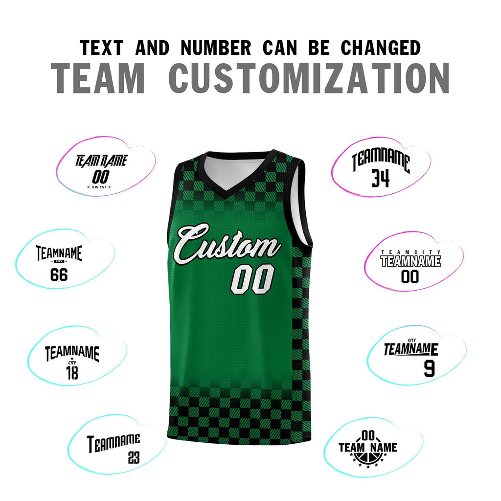 Custom Kelly Green Black Classic Plaid Pattern Sports Uniform Basketball Jersey
