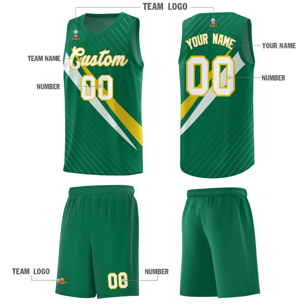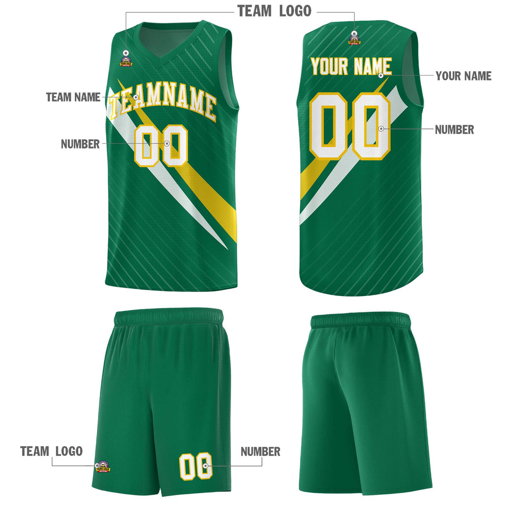 Custom Kelly Green Diagonal Pinstripe Pattern Color Block Sports Uniform Basketball Jersey