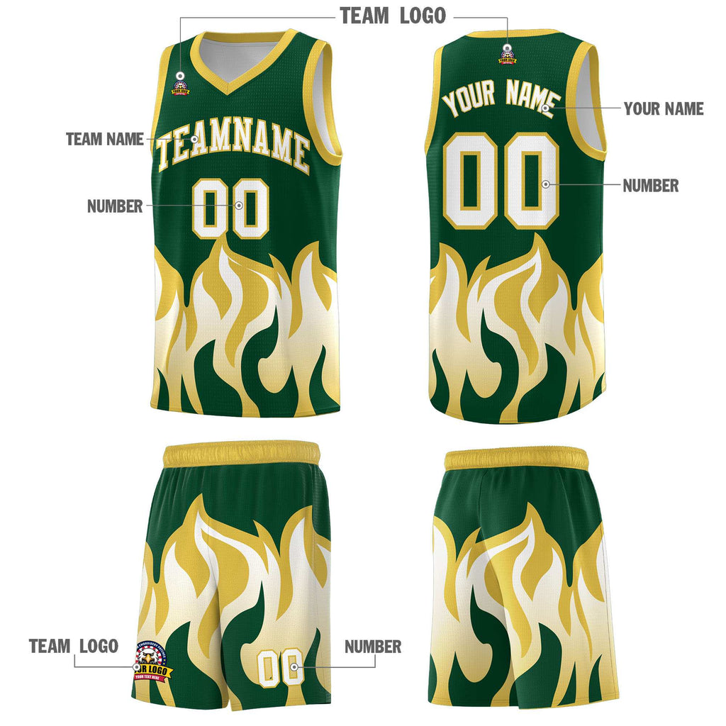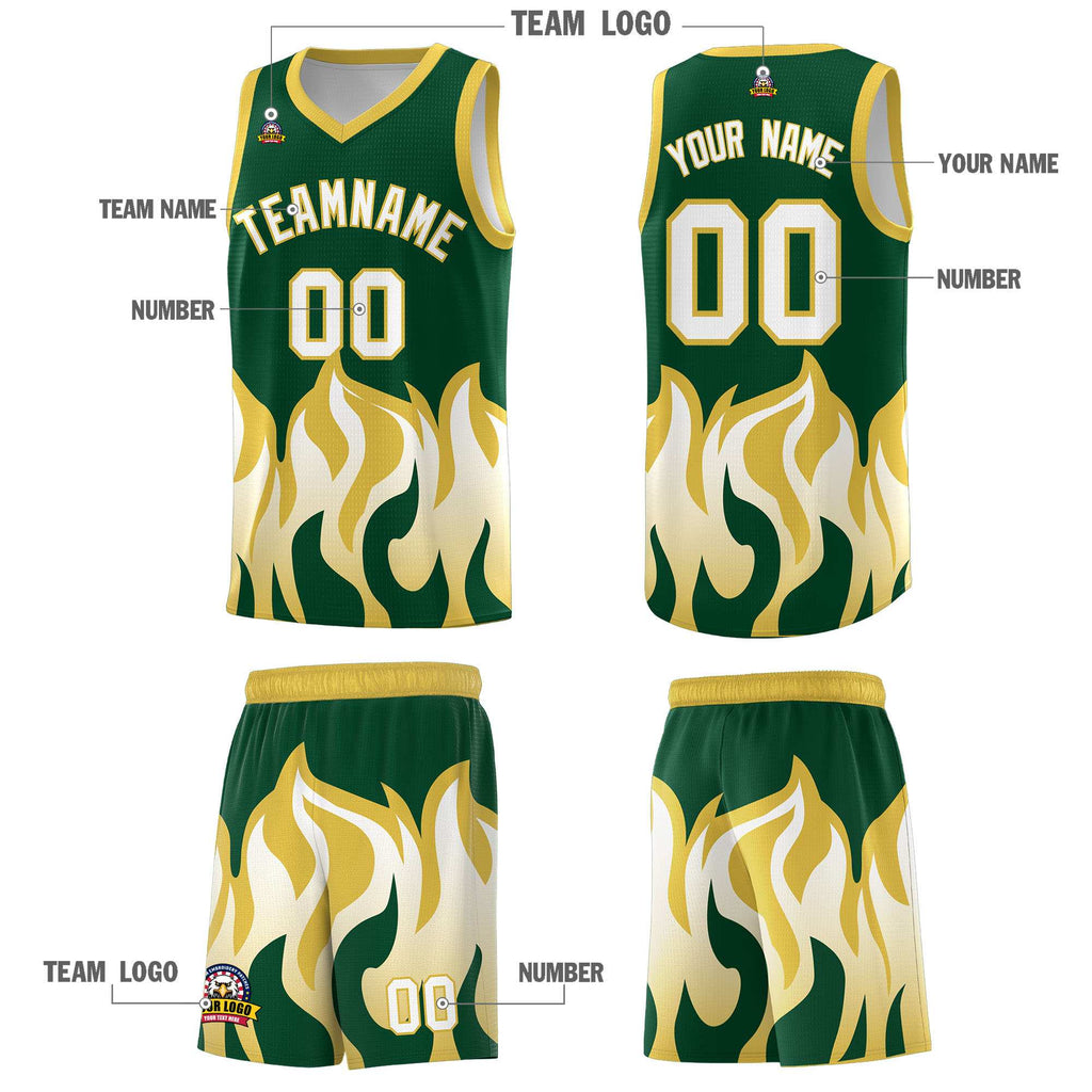 Custom Kelly Green Old Gold Hem Flame Pattern Fashion Sports Uniform Basketball jersey