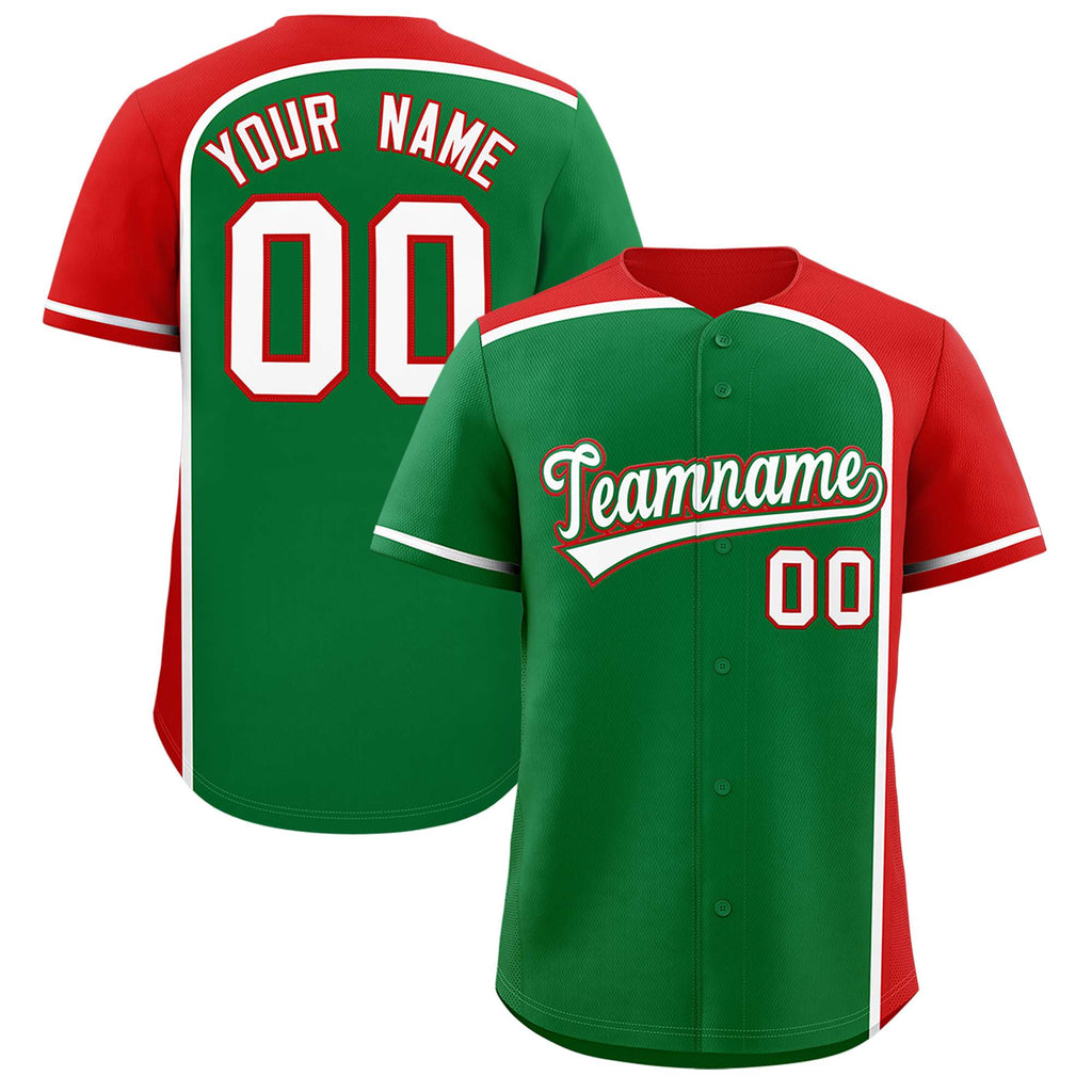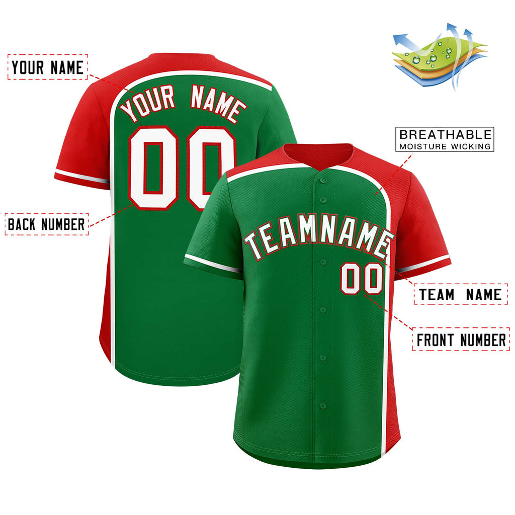 Custom Kelly Green Red Personalized Color Block Authentic Baseball jersey