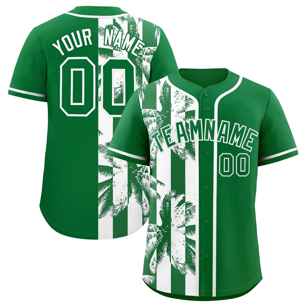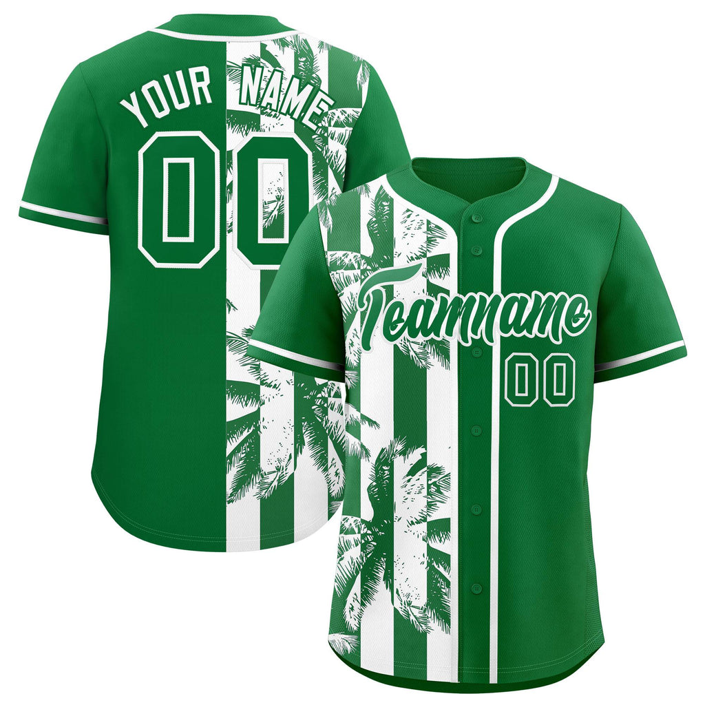 Custom Kelly Green White Split Fashion Coconut Tree Design Authentic Baseball Jersey