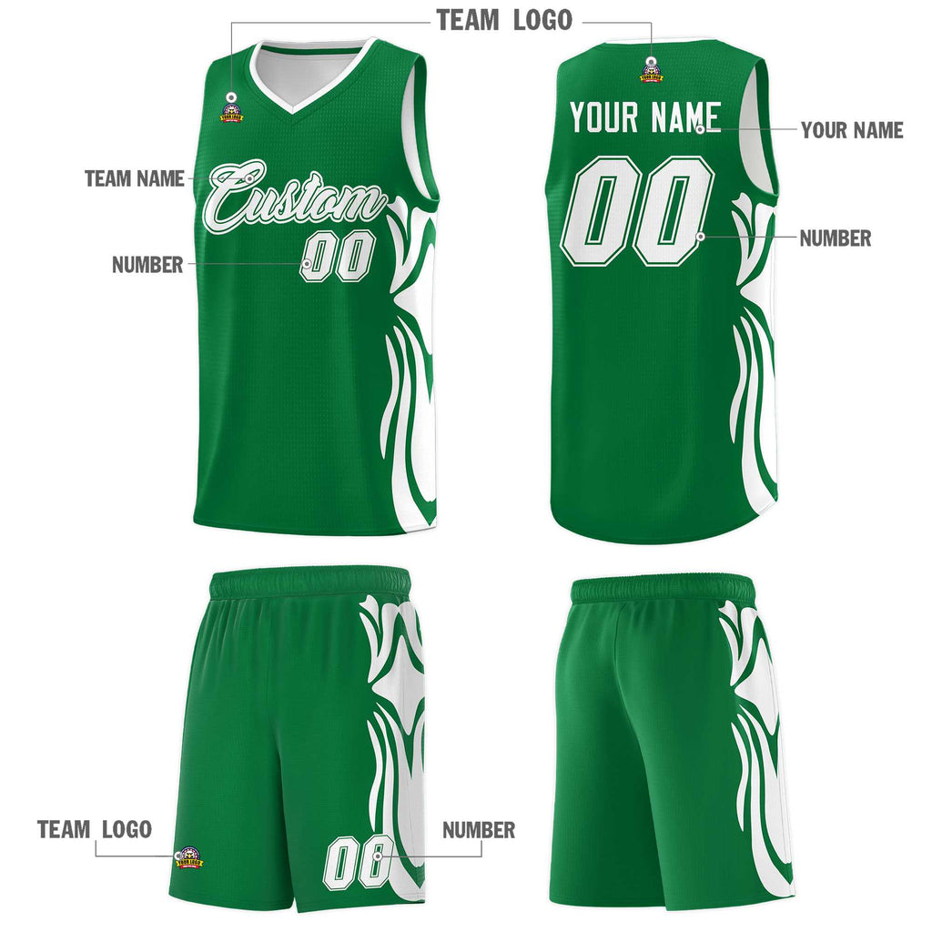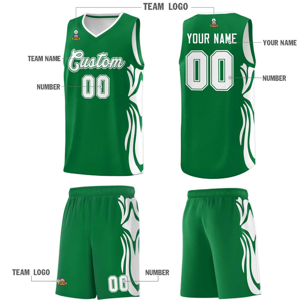Custom Kelly Green White-White Graffiti Pattern Side Curve Pattern Sports Uniform Basketball Jersey Sets