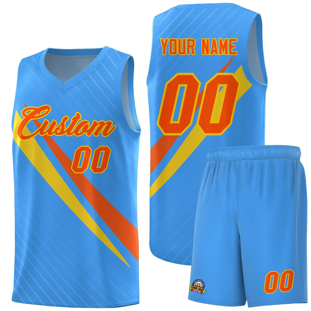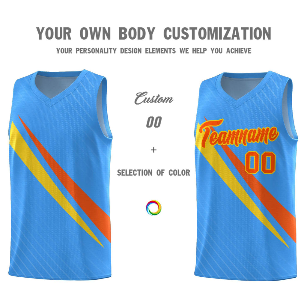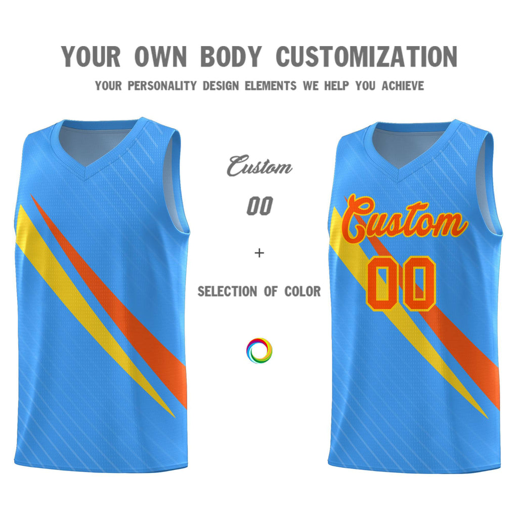 Custom Light Blue Diagonal Pinstripe Pattern Color Block Sports Uniform Basketball Jersey
