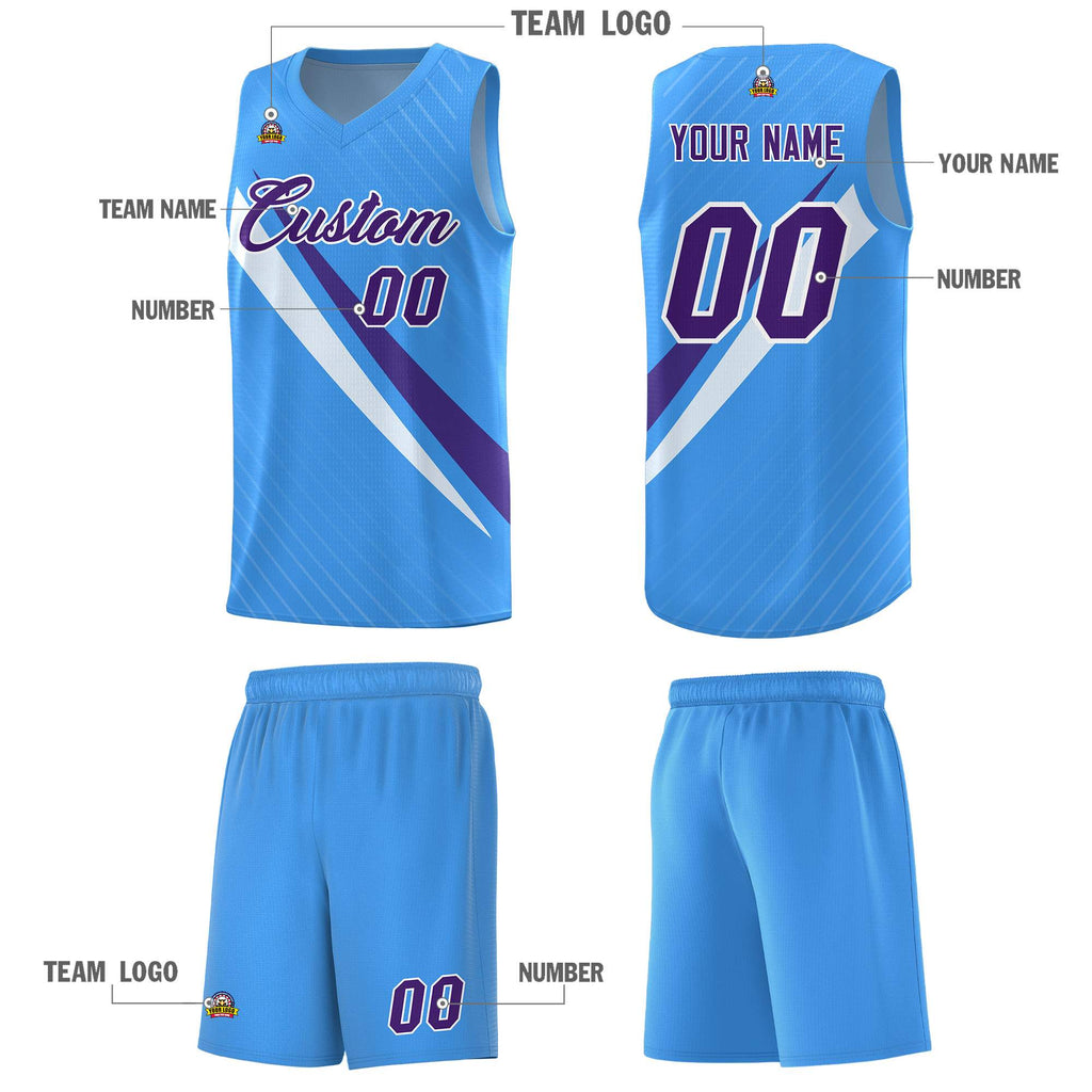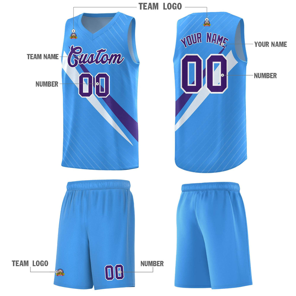 Custom Light Blue Diagonal Pinstripe Pattern Color Block Sports Uniform Basketball Jersey