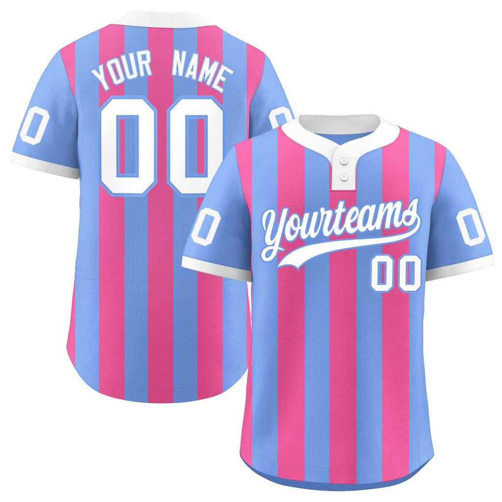 Custom Light Blue Pink Stripe Fashion Authentic Two-Button Baseball Jersey