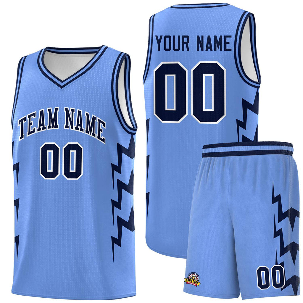 Custom Light Blue Side Lightning Pattern Sports Uniform Basketball Jersey