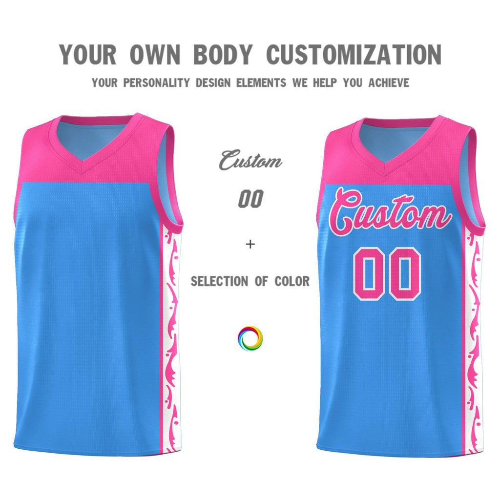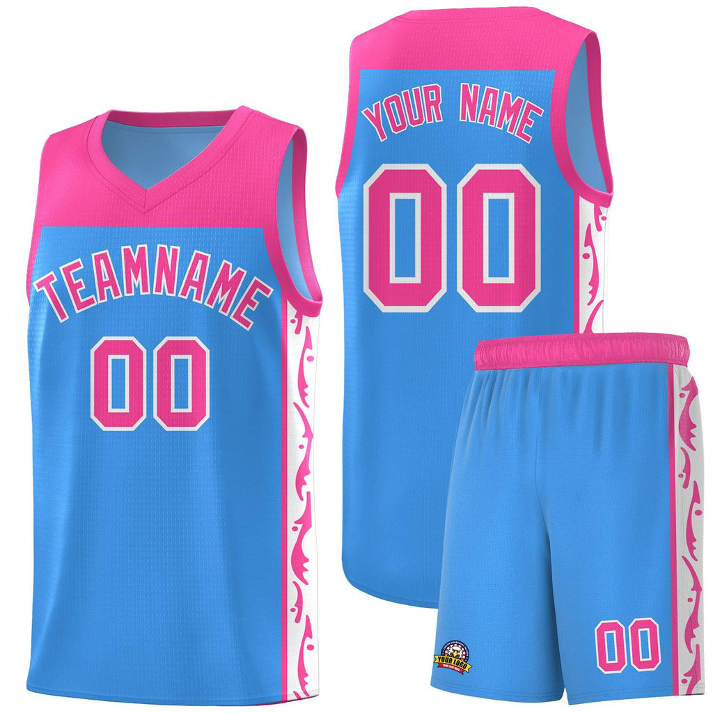 Custom Light Blue Side Pattern Sports Uniform Basketball Jersey