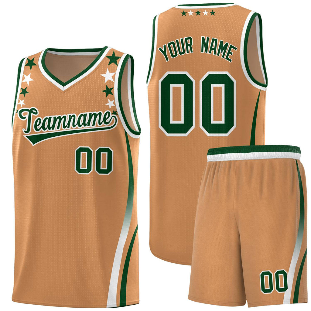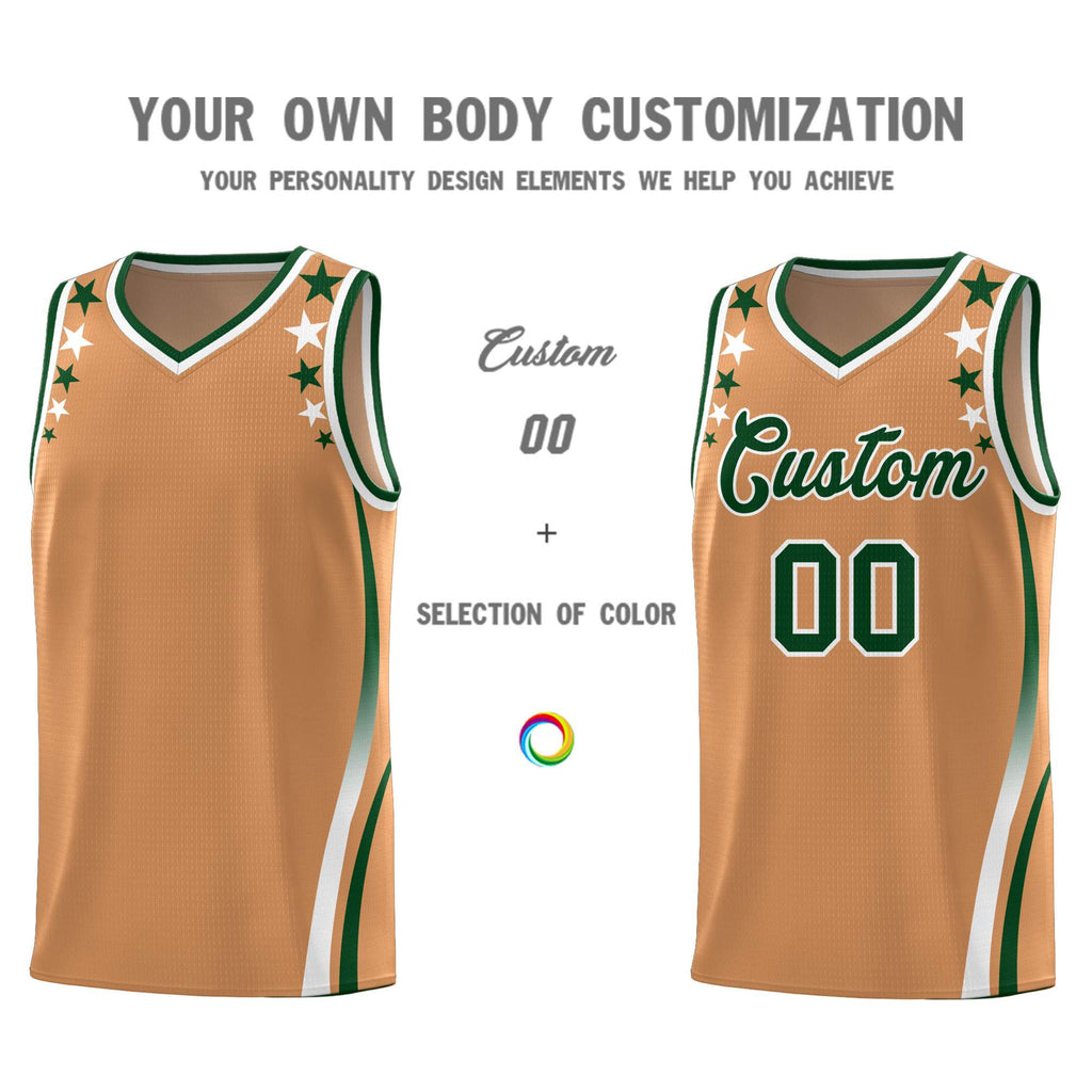 Custom Light Brown Shoulders Star Pattern Side Color Block Sports Uniform Basketball Jersey