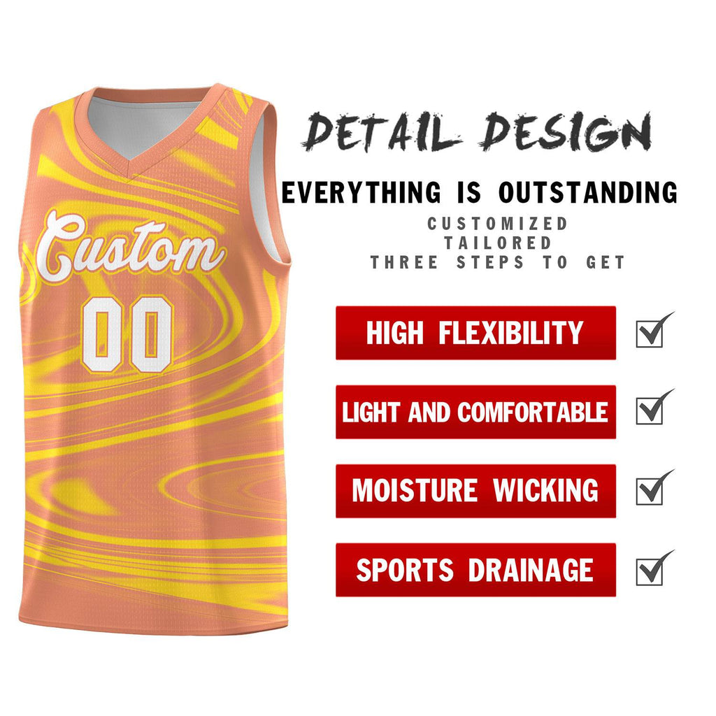 Custom Light Orange Gold Graffiti Pattern Fluids Style Sports Uniform Basketball Jersey Sets