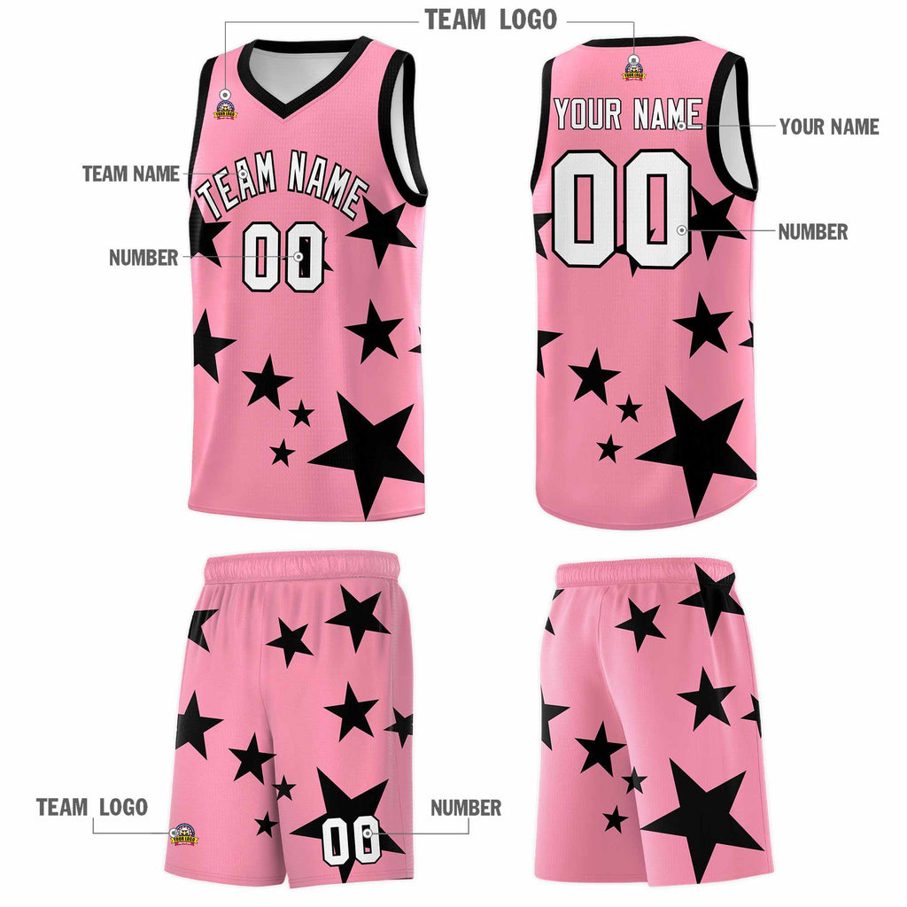 /products/custom-light-pink-black-graffiti-pattern-star-print-basketball-jersey-sets-042