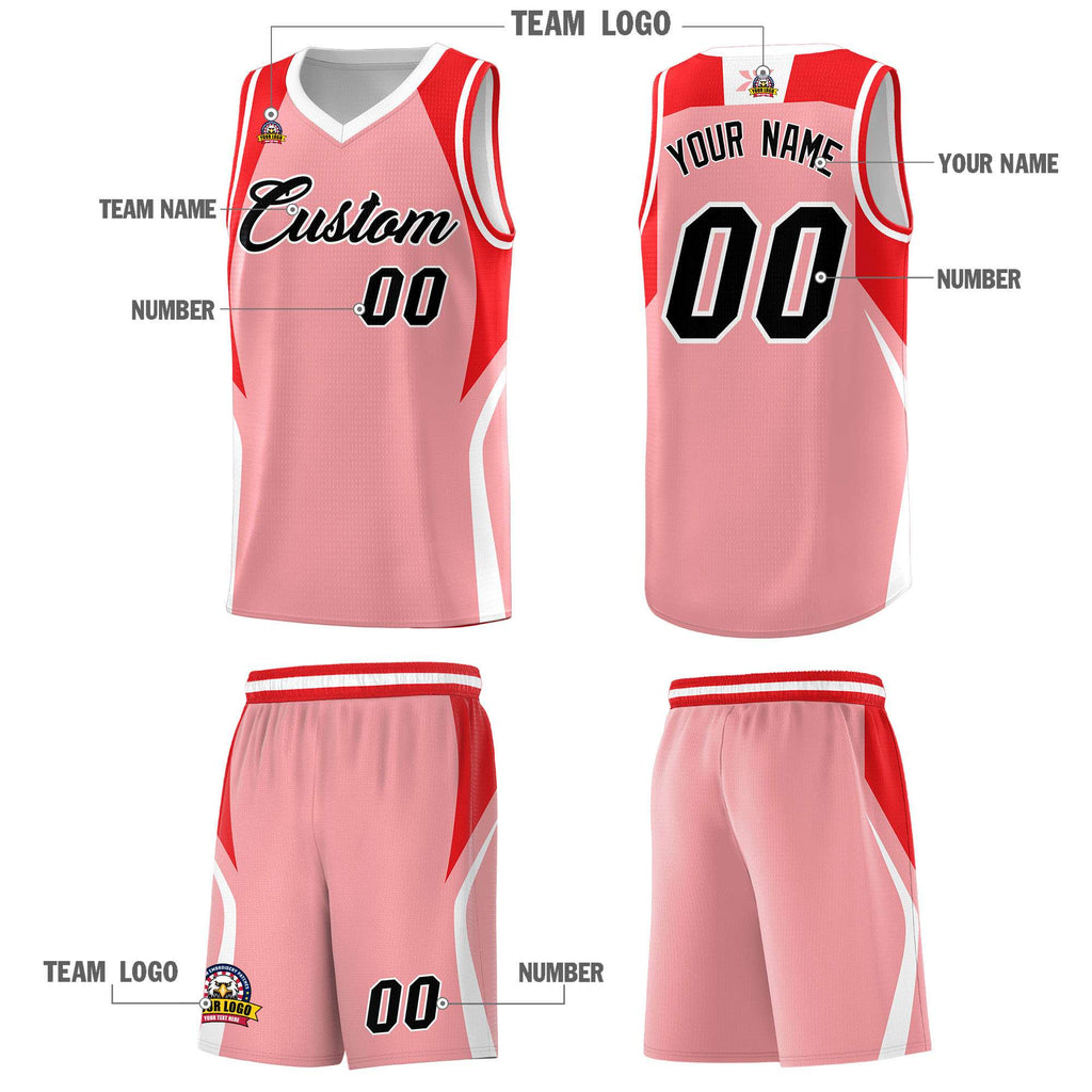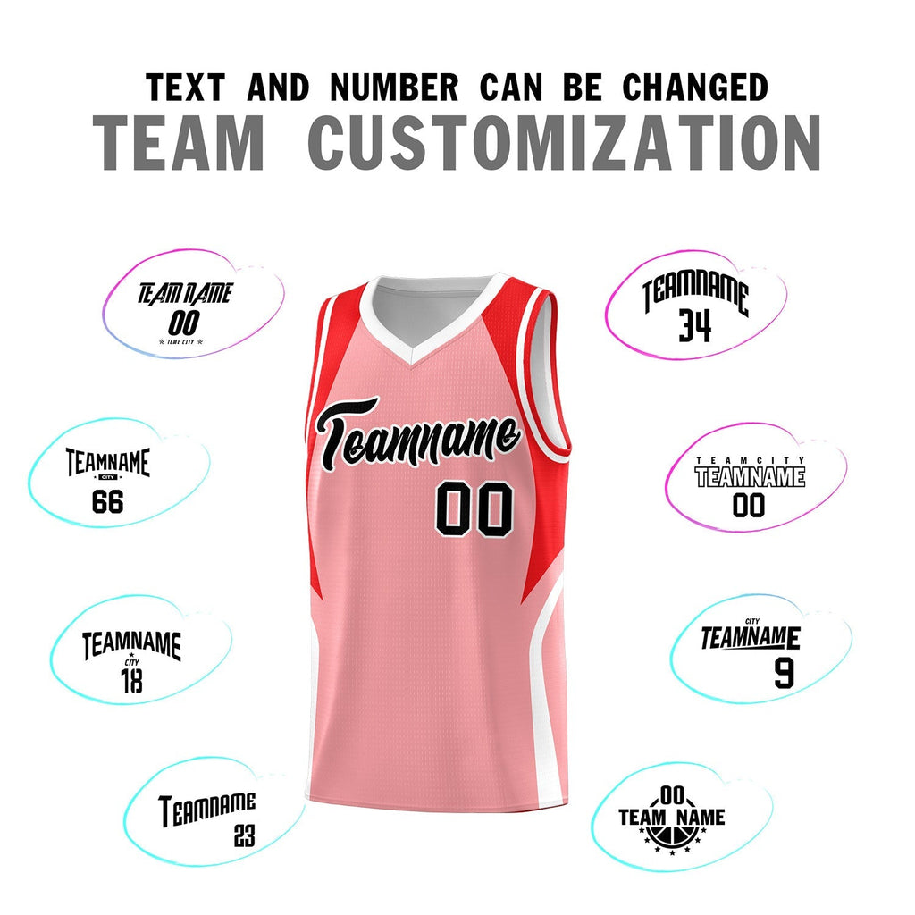 Custom Light Pink Red and White Color Block Sports Uniform Basketball Jersey