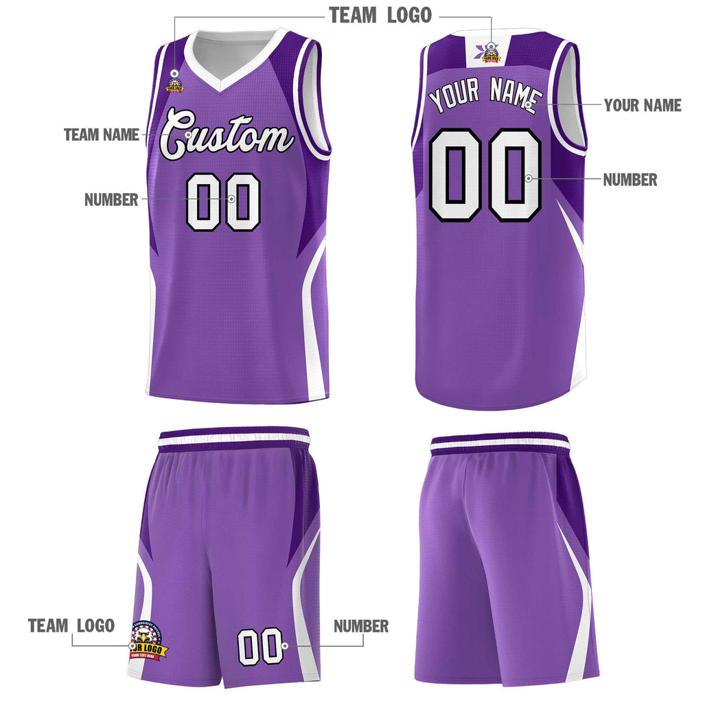 Custom Light Purple Purple and White Color Block Sports Uniform Basketball Jersey