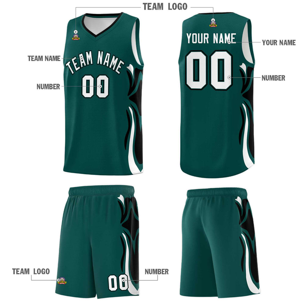 Custom Midnight Green White-Black Graffiti Pattern Side Curve Pattern Sports Uniform Basketball Jersey Sets