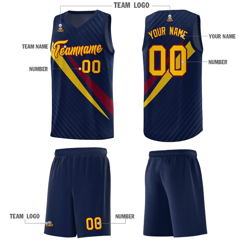 Custom Navy Diagonal Pinstripe Pattern Color Block Sports Uniform Basketball Jersey