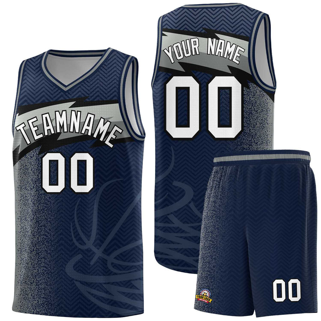 Custom Navy Dot Scatter Graffiti Pattern Sports Uniform Basketball Jersey
